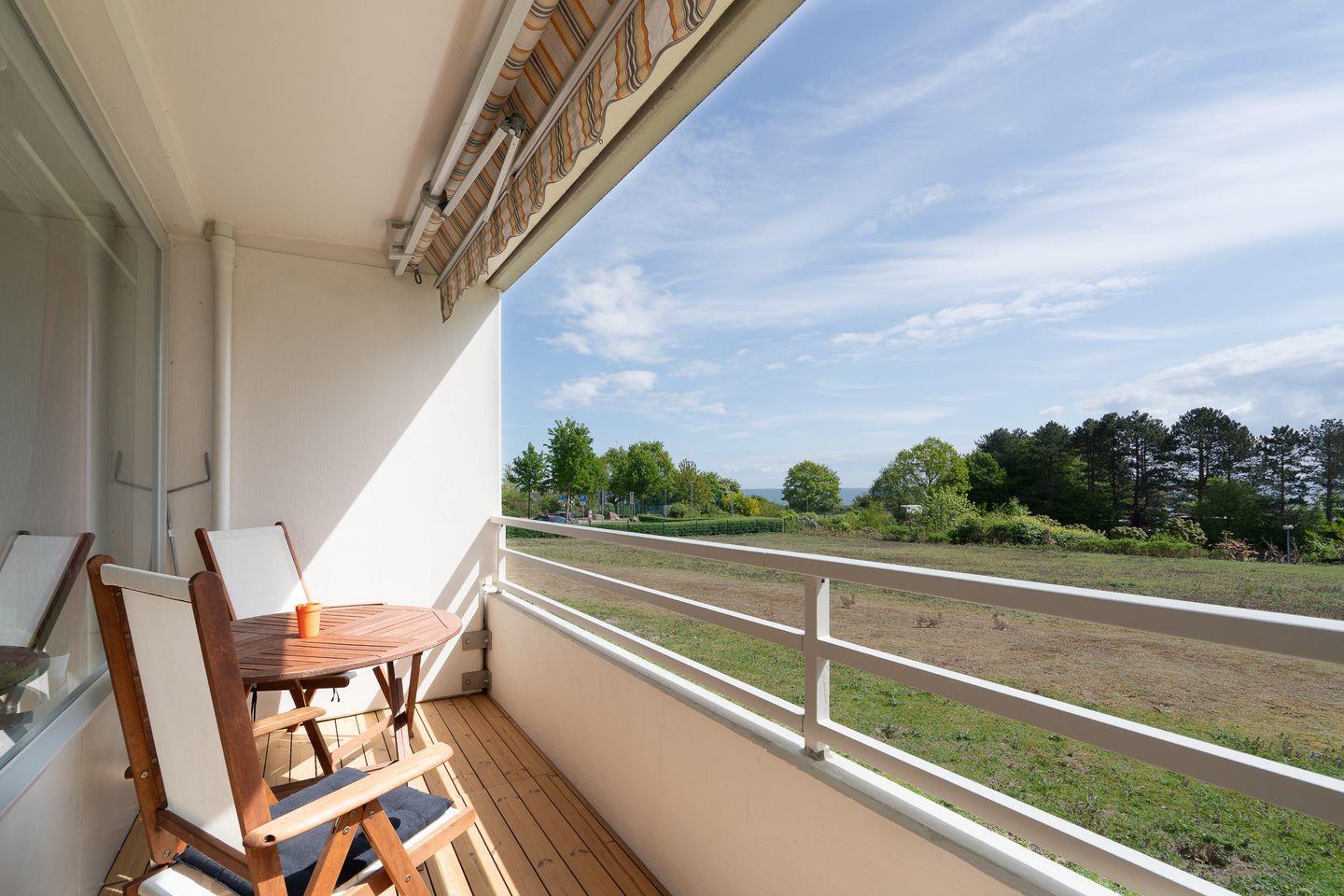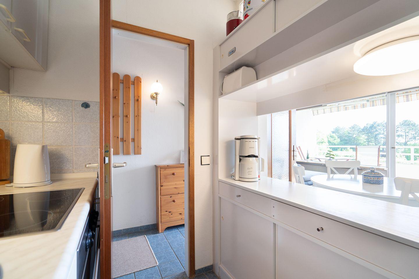 Ein weiteres Highlight des Appartements ist der überdachte Balkon, auf der Sie die frische Luft genießen und den Blick auf die Umgebung schweifen lassen können. Von hier aus sind es nur 150 Meter bis zum Sandstrand – der ideale Ort, um die Seele baumeln zu lassen und die Sonne zu genießen. Das Appartement bietet zudem einen eingeschränkten Meerblick.