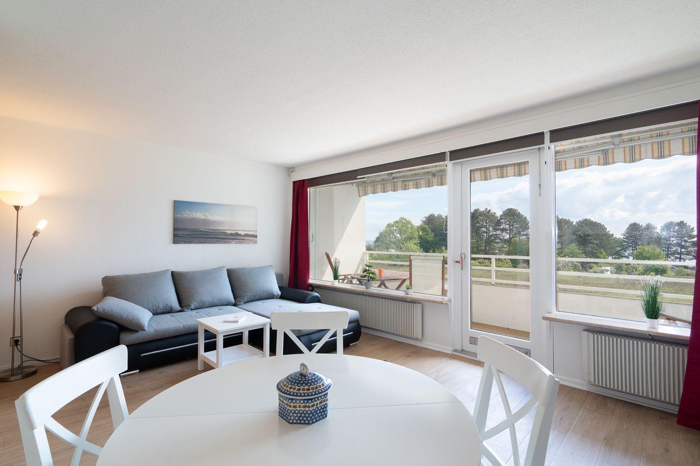 Die 2-Raum-Ferienwohnung Nr. 561 befindet sich im Hochparterre mit Balkon in Süd-Ost-Lage. Die Küchenzeile mit Herd und Backofen ist mit einer Durchreiche zum Wohn- und Essbereich hin offen. Im innenliegenden Schlafraum befinden sich zwei getrennte Betten, die man nicht zusammenschieben kann. Das moderne und helle Duschbad ist innenliegend. Zum Strand sind es nur wenige Fußschritte.