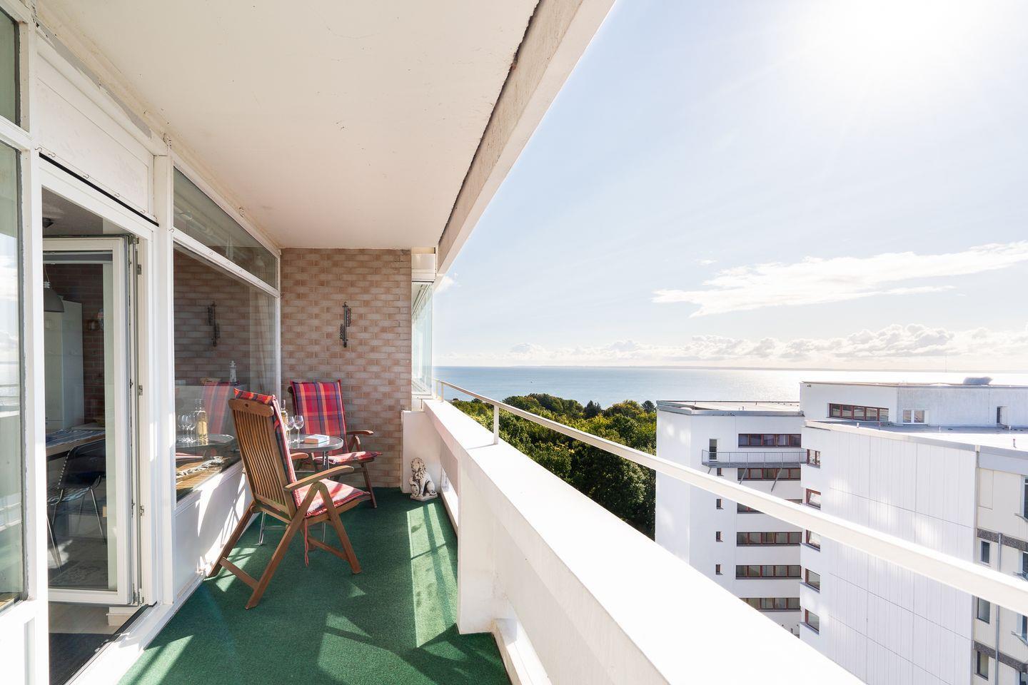 Moderne 1-Raum-Ferienwohnung mit Südbalkon und herrlichem Ostseeblick nahe Strand und Schwimmbad.