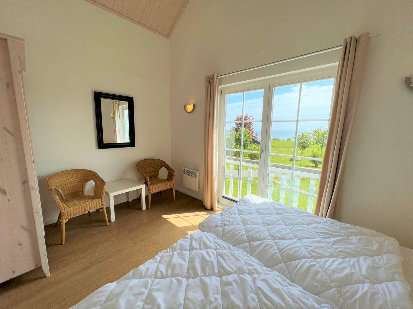 Die große Doppelhaushälfte Nr. 91 bietet viel Platz und Wohlfühl-Komfort über 3 Etagen und Blick auf die Ostsee. Der Wohn- und Essbereich mit Kamin und offener Küche liegen im Erdgeschoss, sowie die Sauna mit Dusche und WC. Die Küche verfügt über Spülmaschine, Backofen, Herd und Waschmaschine. In der ersten Etage sind 2 Schlafräume mit Doppelbetten und das Bad mit Whirlwanne. Zur offenen Schlafgalerie mit zwei Einzelbetten führt von der 1.Etage aus eine steile Raumspartreppe. WLAN ist inklusive.