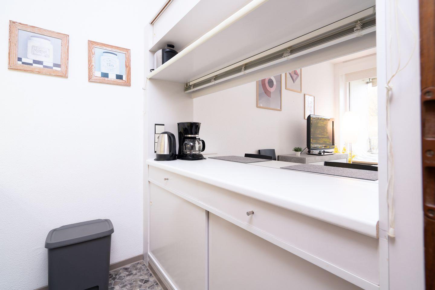Die 1-Raum-Ferienwohnung Nr. 614 liegt in der Apartmentanlage Ferienpark in der 1. Etage mit einem Balkon und Blick auf den Hansa Park. Im kombinierten Wohn- und Schlafraum steht Ihnen ein Doppelbett und ein Zustellbett zur Verfügung. Die Küche mit Esstresen ist zum Wohnraum hin offen und mit Backofen und Herd ausgestattet. Das Duschbad ist innenliegend. Zum Strand sind es nur wenige Gehminuten. WLAN inklusive.