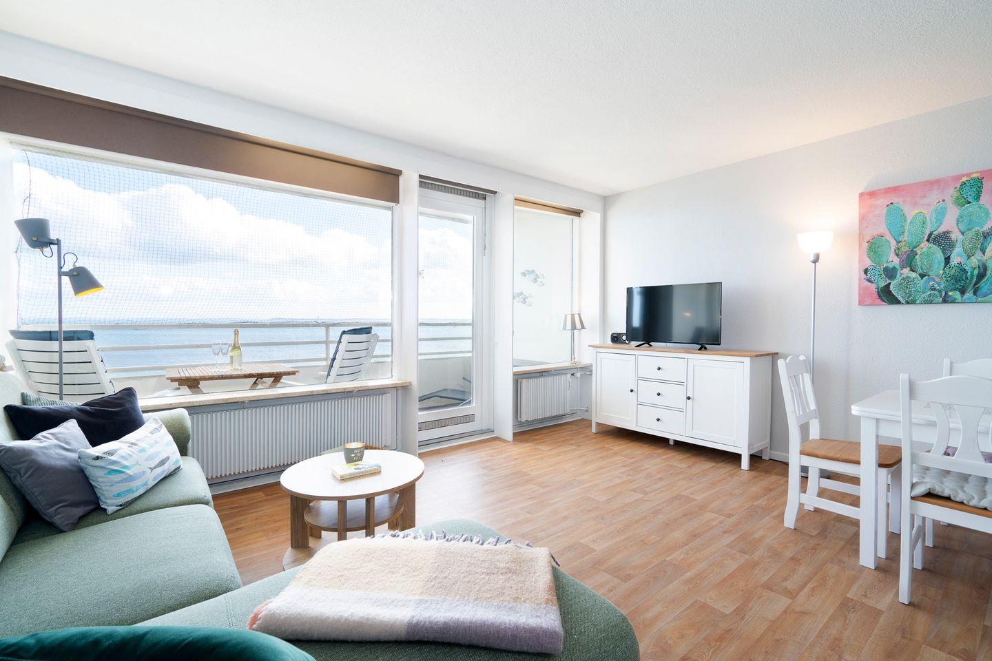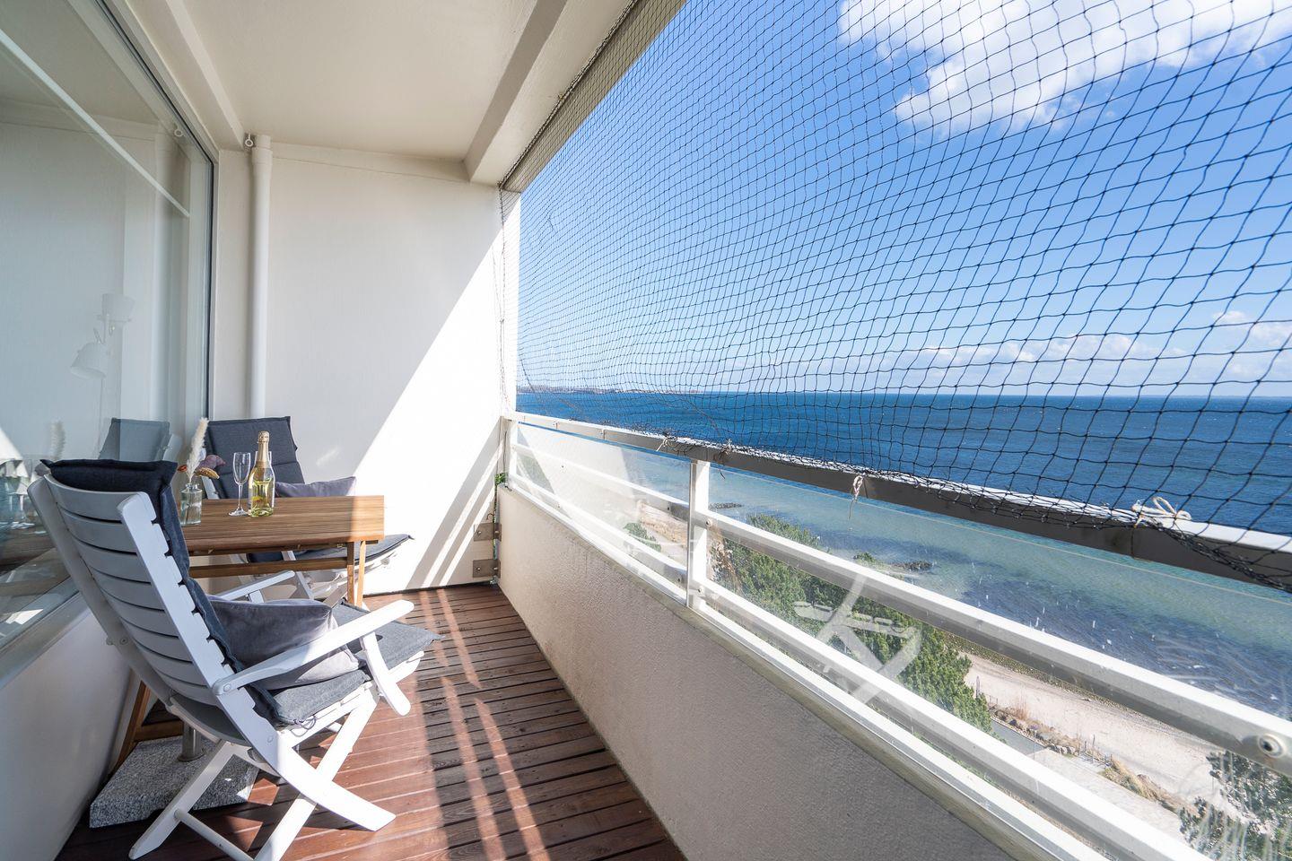 Modernes, frisch renoviertes Apartment mit Balkon und Ostseeblick, nur wenige Schritte vom Strand entfernt.