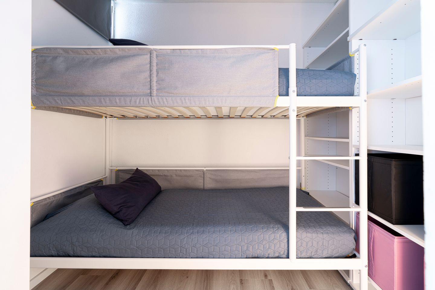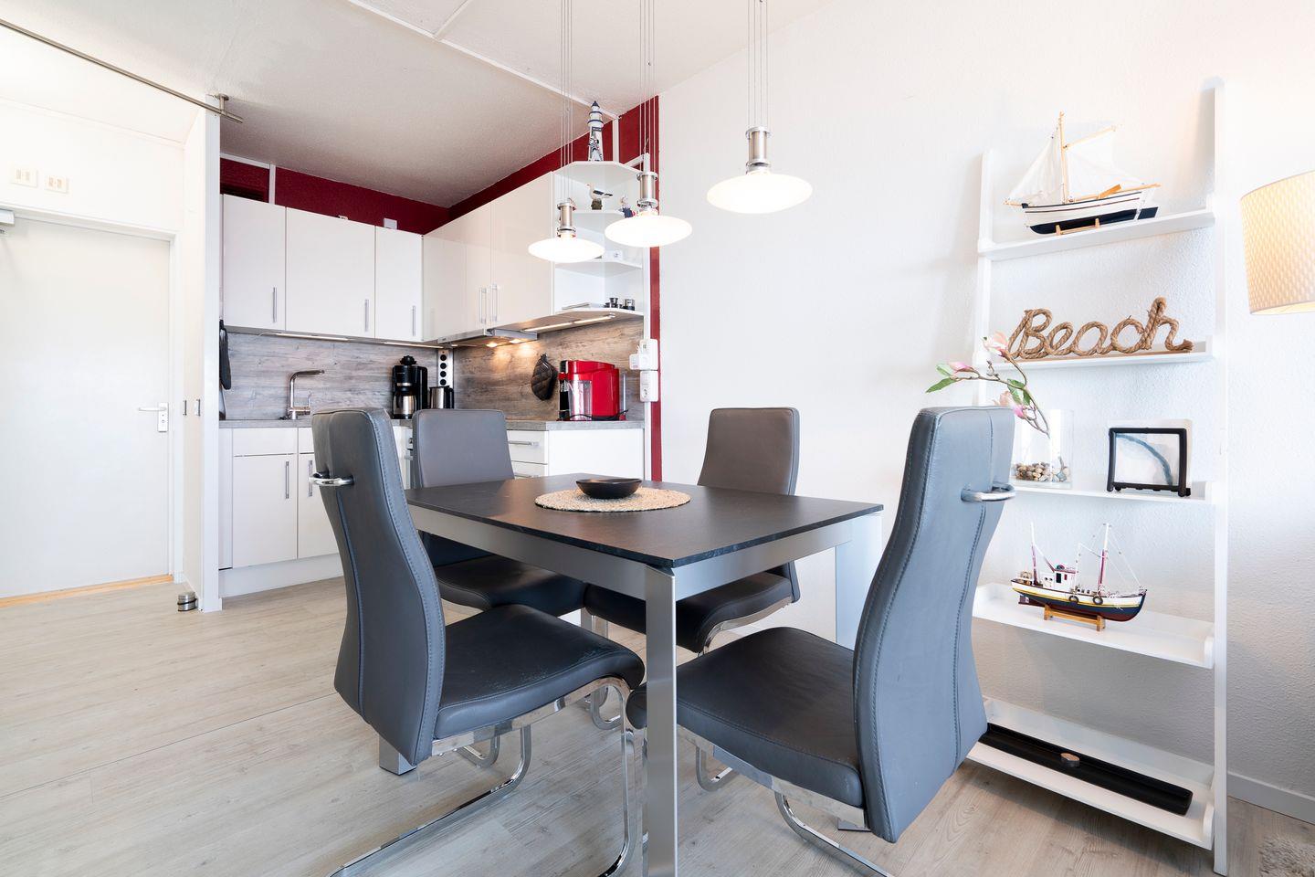Die Wohnung liegt in der 8. Etage und hat einen Balkon in Ostlage. Von hier aus können Sie nicht nur den Hansapark sehen, sondern auch einen schönen Fernblick auf die Ostsee genießen. Im ersten Schlafraum mit Fensterfront steht ein Doppelbett (160 cm x 190 cm). Das Fenster lässt sich nicht öffnen, gewährt aber Blick auf die Ostsee - aufwachen und das Meer sehen, so kann der Tag beginnen! Im zweiten, innenliegenden Schlafraum steht ein Etagenbett (2x 90 cm x 200 cm). Die kleine, moderne Küche ist mit Backofen und Herd ausgestattet und in den Ess- und Wohnbereich integriert. Die Wohnung verfügt über eine eigene Waschmaschine. Das Wannenbad ist innenliegend. Der Strand ist fußläufig in wenigen Minuten zu erreichen. PKW-Stellplatz inklusive.