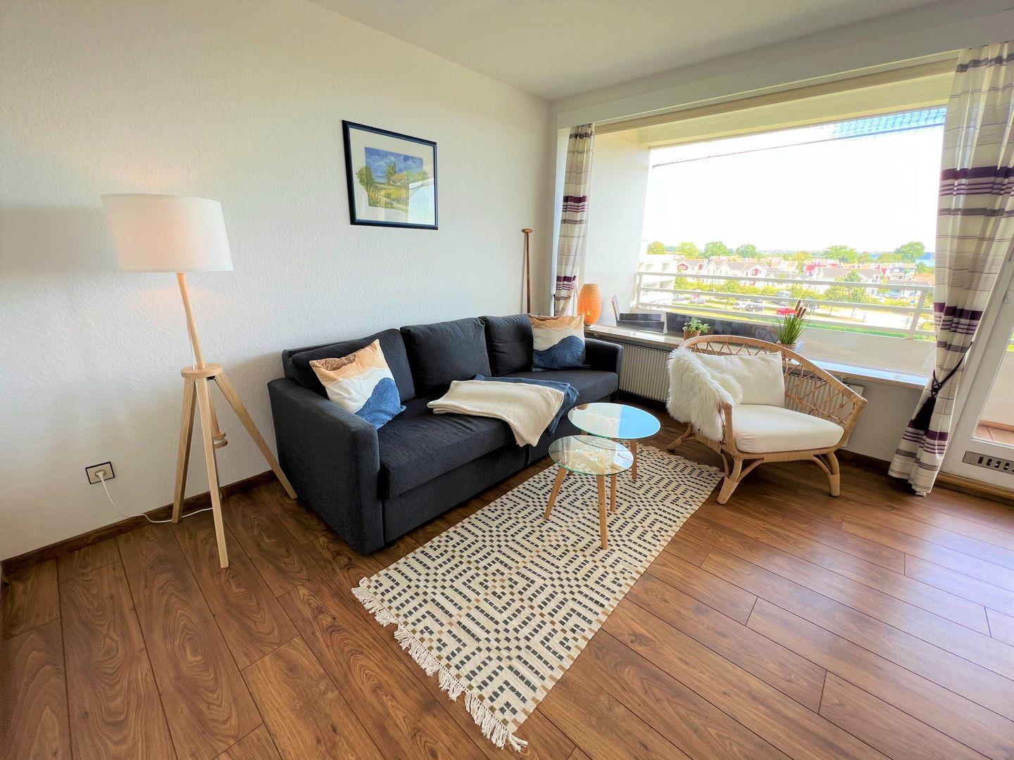 Gemütliche 2-Raum-Ferienwohnung mit Balkon und schönem Fernblick auf die Lübecker Bucht, nur wenige Schritte vom Strand entfernt.