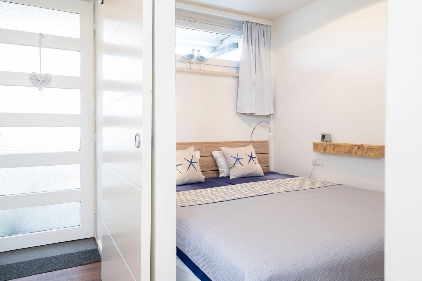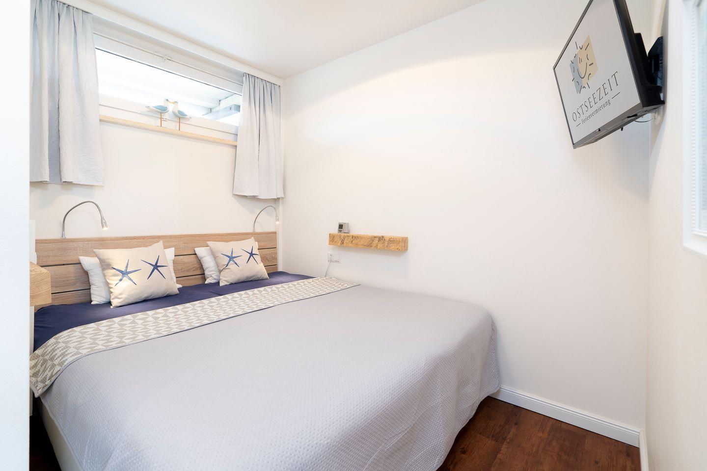 Die moderne Küche ist mit Spülmaschine, Backofen und Herd voll ausgestattet und in den kombinierten Wohn- und Essbereich integriert. Der Schlafraum mit Oberlicht ist mit einem gemütlichen Doppelbett (2x 90 cm x 200 cm) ausgestattet und hat ein zusätzliches TV-Gerät. Viel Stauraum bietet das separate Ankleidezimmer. Der geschmackvoll und freundlich eingerichtete Wohn- und Essbereich ist zudem mit einem Schlafsofa ausgestattet (Liegefläche 120 cm x 200 cm). Das moderne Badezimmer ist innenliegend und hat eine bodentiefe Dusche.
