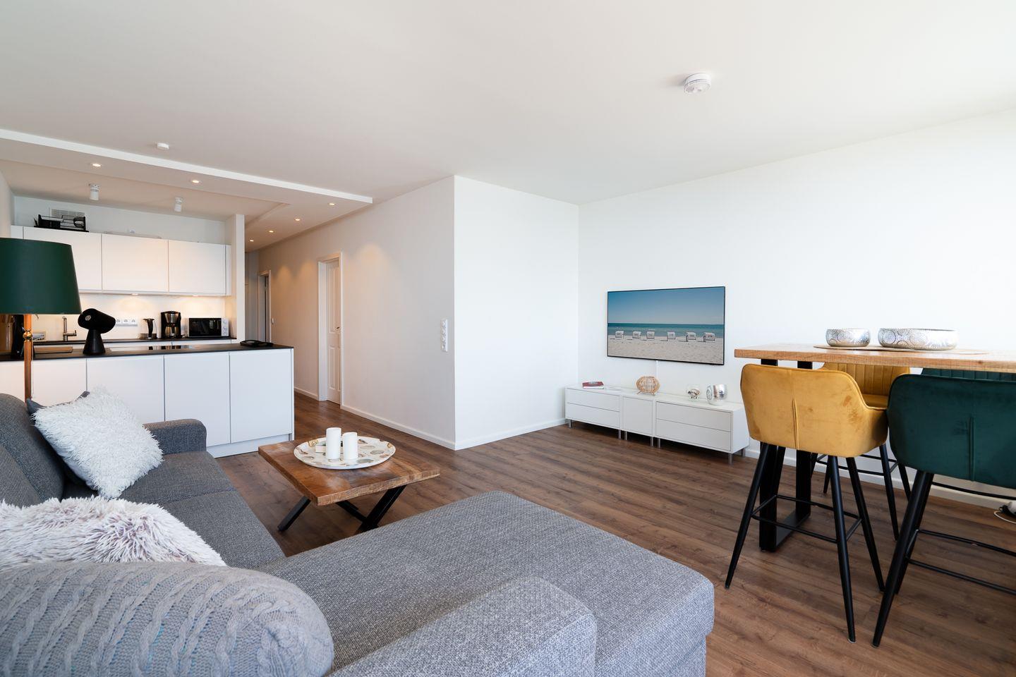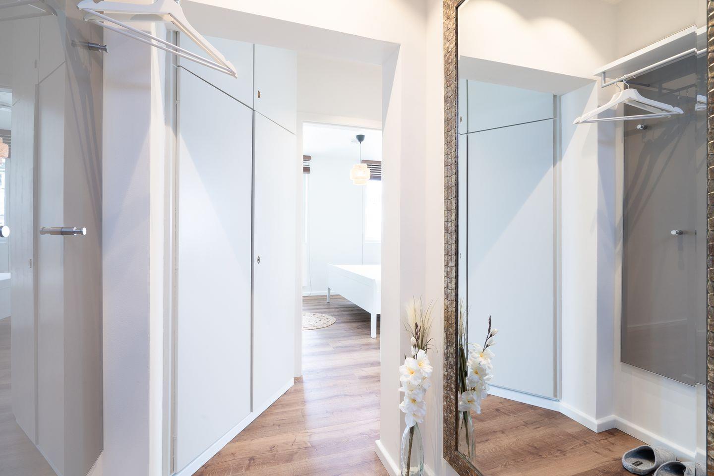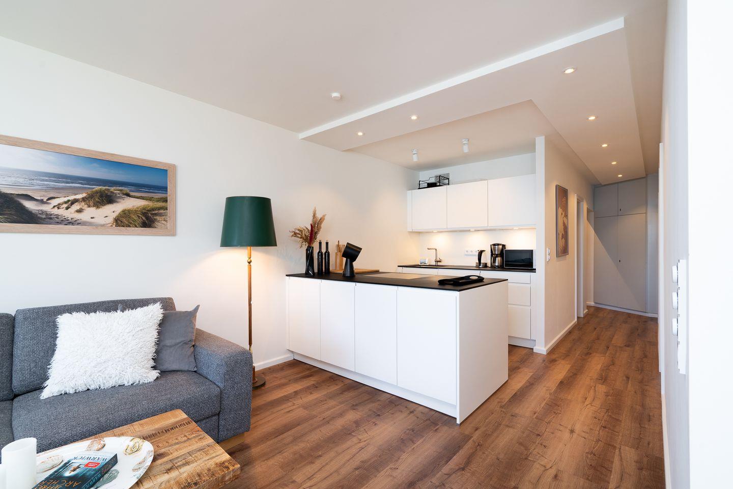 Die hochwertig ausgestattete Wohnung bietet mit ca. 62 m² großzügig Platz für bis zu vier Personen. Das geräumigen Wohnzimmer mit intergrierter Einbauküche mit Küchenblock, Spülmaschine, Backofen und Herd lädt zu entspannten Kochabenden und geselligen Frühstücksrunden ein.