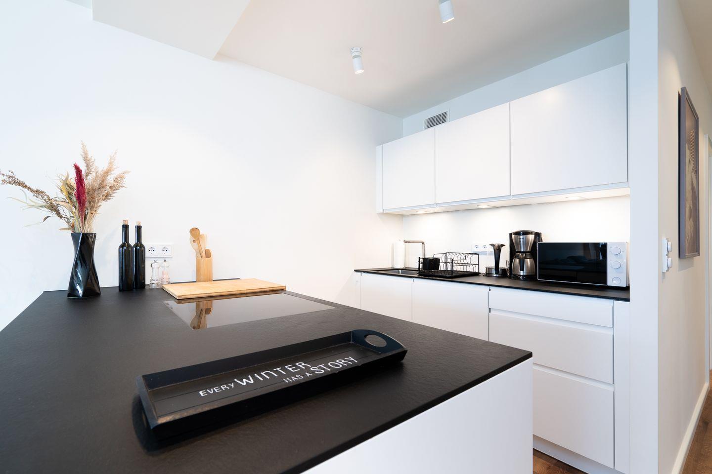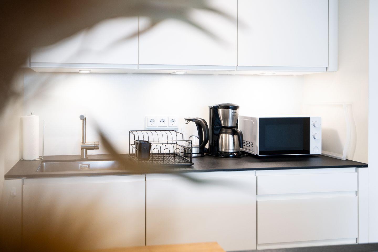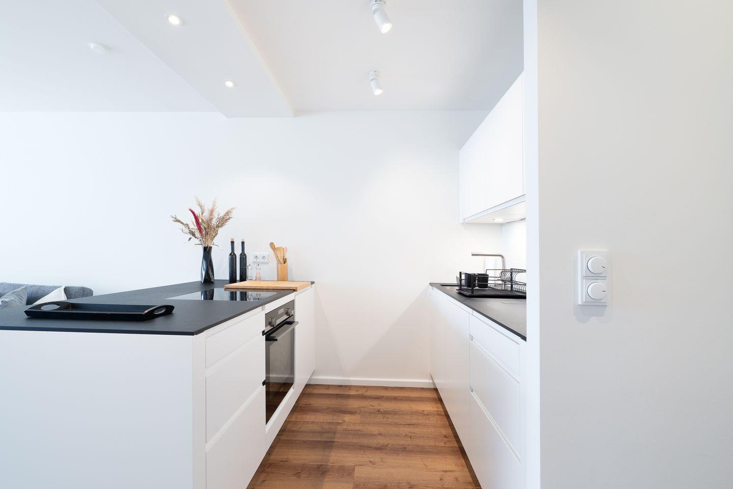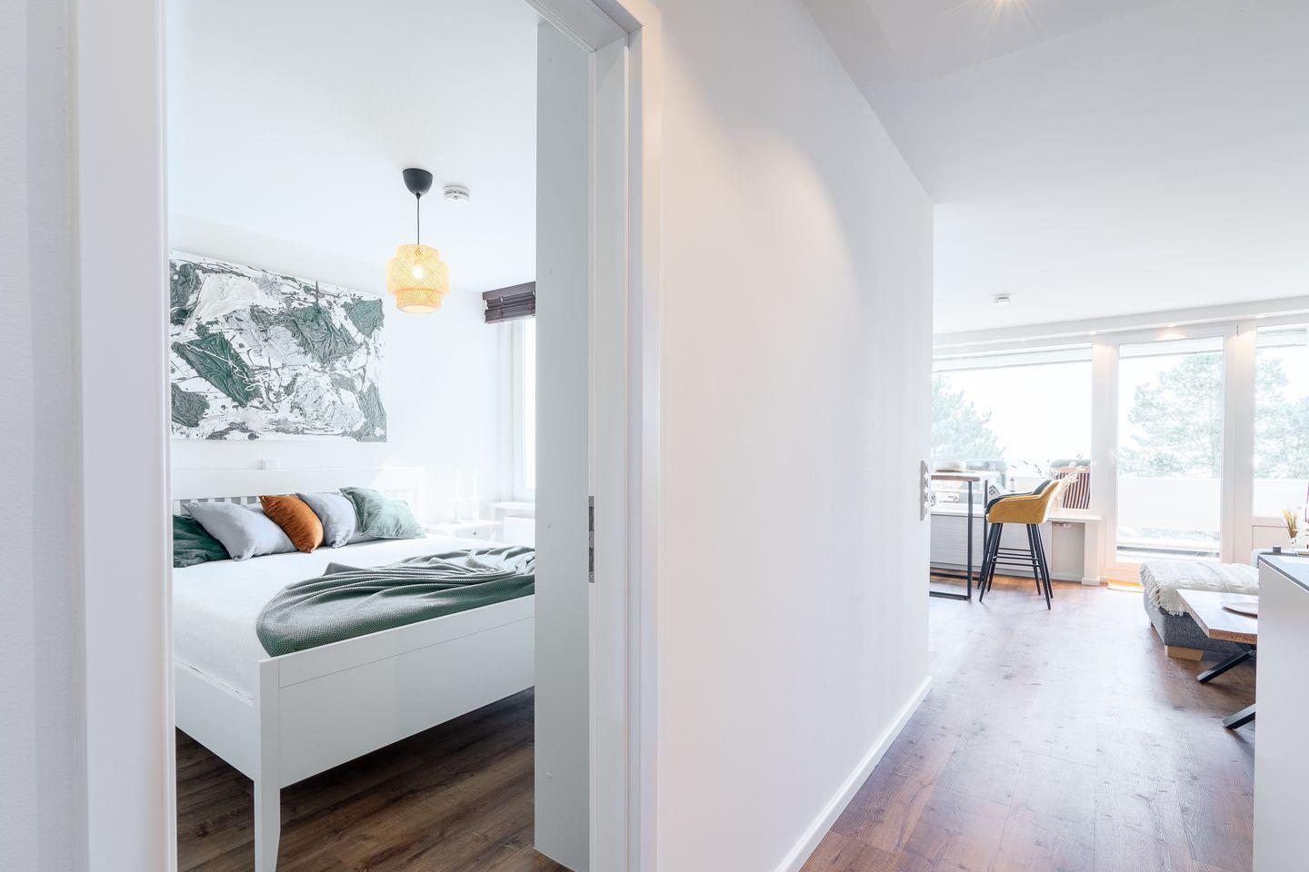 Die hochwertig ausgestattete Wohnung bietet mit ca. 62 m² großzügig Platz für bis zu vier Personen. Das geräumigen Wohnzimmer mit intergrierter Einbauküche mit Küchenblock, Spülmaschine, Backofen und Herd lädt zu entspannten Kochabenden und geselligen Frühstücksrunden ein.