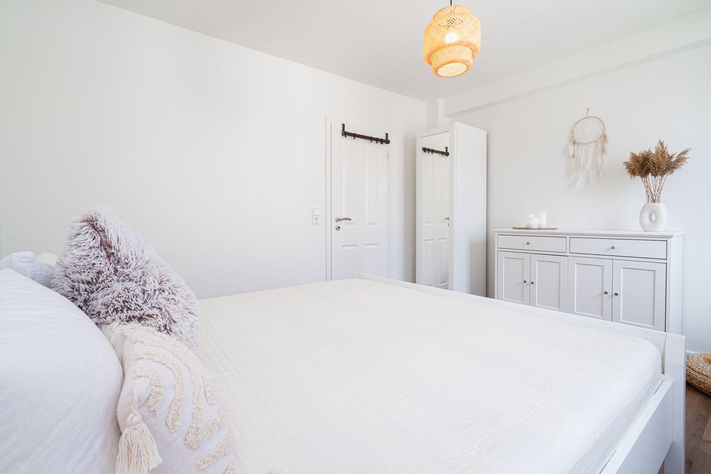 Beide Schlafzimmer (ca. 12 m² und 11 m²) haben ein Doppelbett mit durchgehender Matratze (jeweils 180 cm x 200 cm), eines der Zimmer hat sogar Meerblick vom Fenster aus. Aufwachen mit Blick auf die Ostsee - so kann der Tag beginnen!