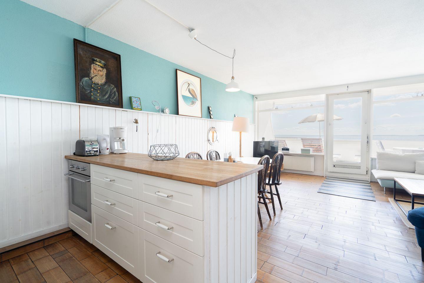 Die hübsche 3-Raum-Ferienwohnung ist ein wunderbares Domizil für die ganze Familie. Vom Balkon haben Sie einen schönen Blick auf die Ostsee. Der gemütlich Wohn-/Essbereich strahlt mit seiner stimmigen Einrichtung und maritimen Elementen Wohlfühlatmosphäre aus. Die Küche ist mit Spülmaschine, Herd und Mikrowelle ausgestattet und zum Essbereich offen. Im ersten Schlafzimmer steht ein Doppelbett, im zweiten ein Etagenbett. Das Duschbad ist innenliegend. Zum Strand sind es nur wenige Fußschritte.