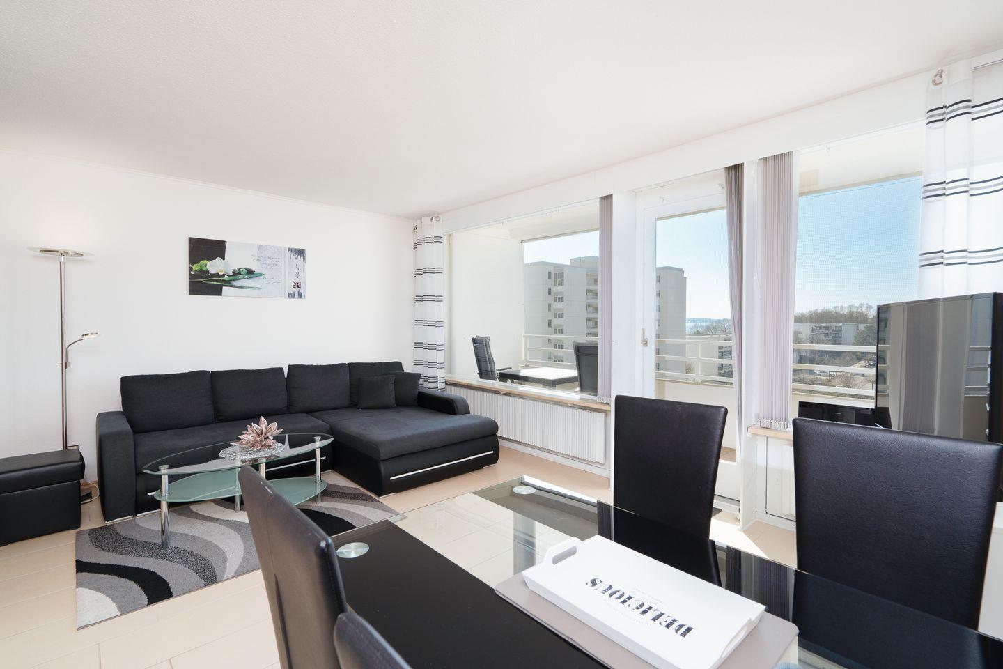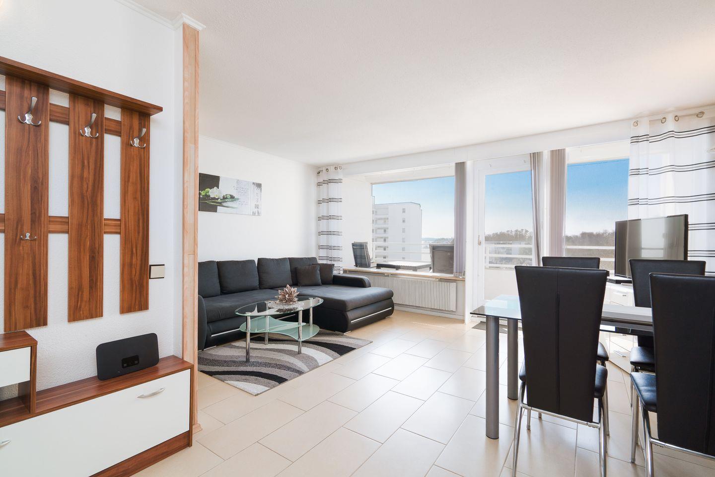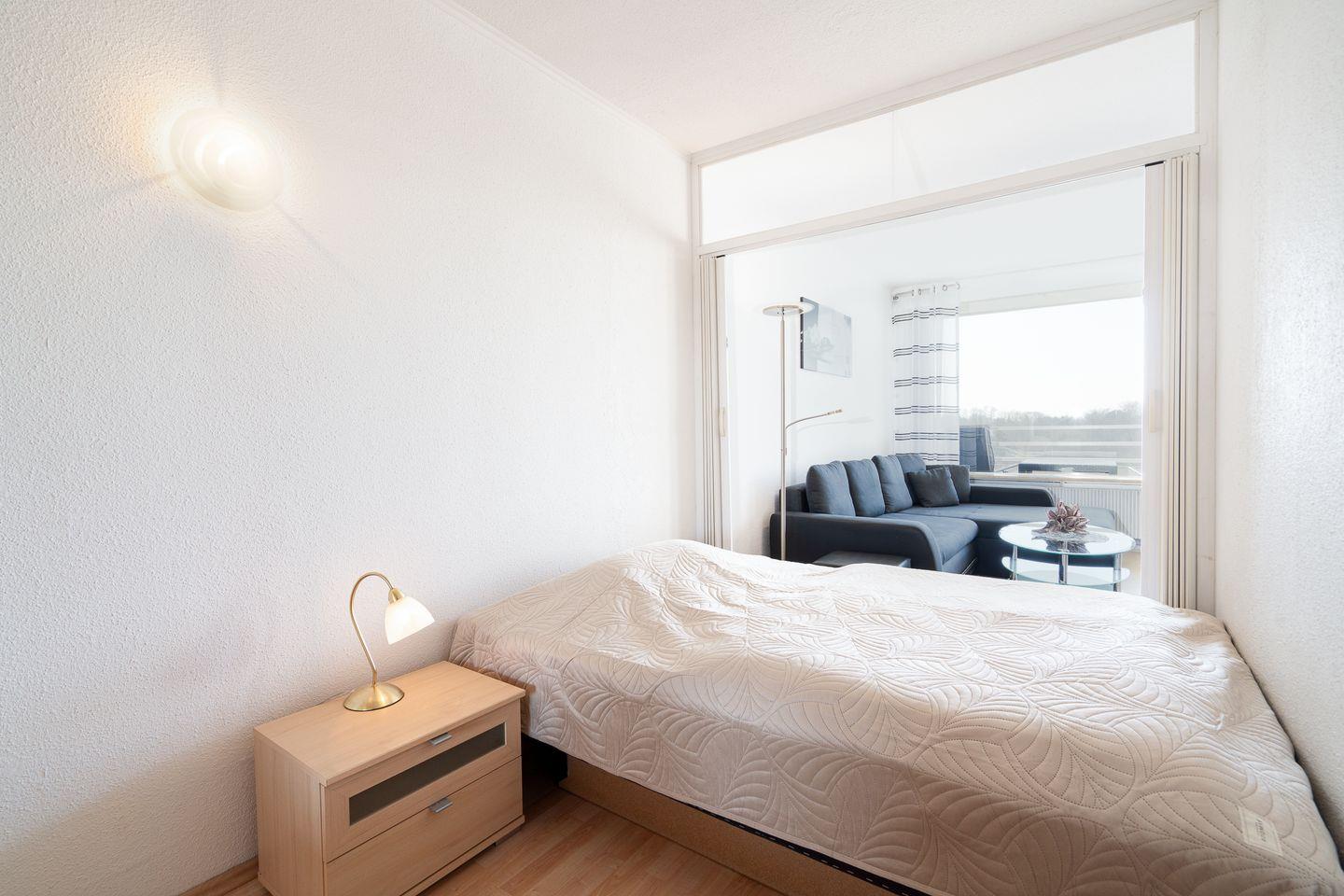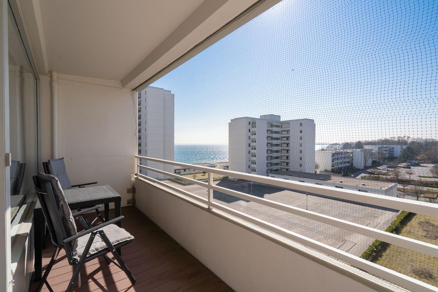 Helle 1-Raum-Ferienwohnung mit Balkon und Seeblick nahe Strand und Lübecker Bucht für bis zu 4 Personen.