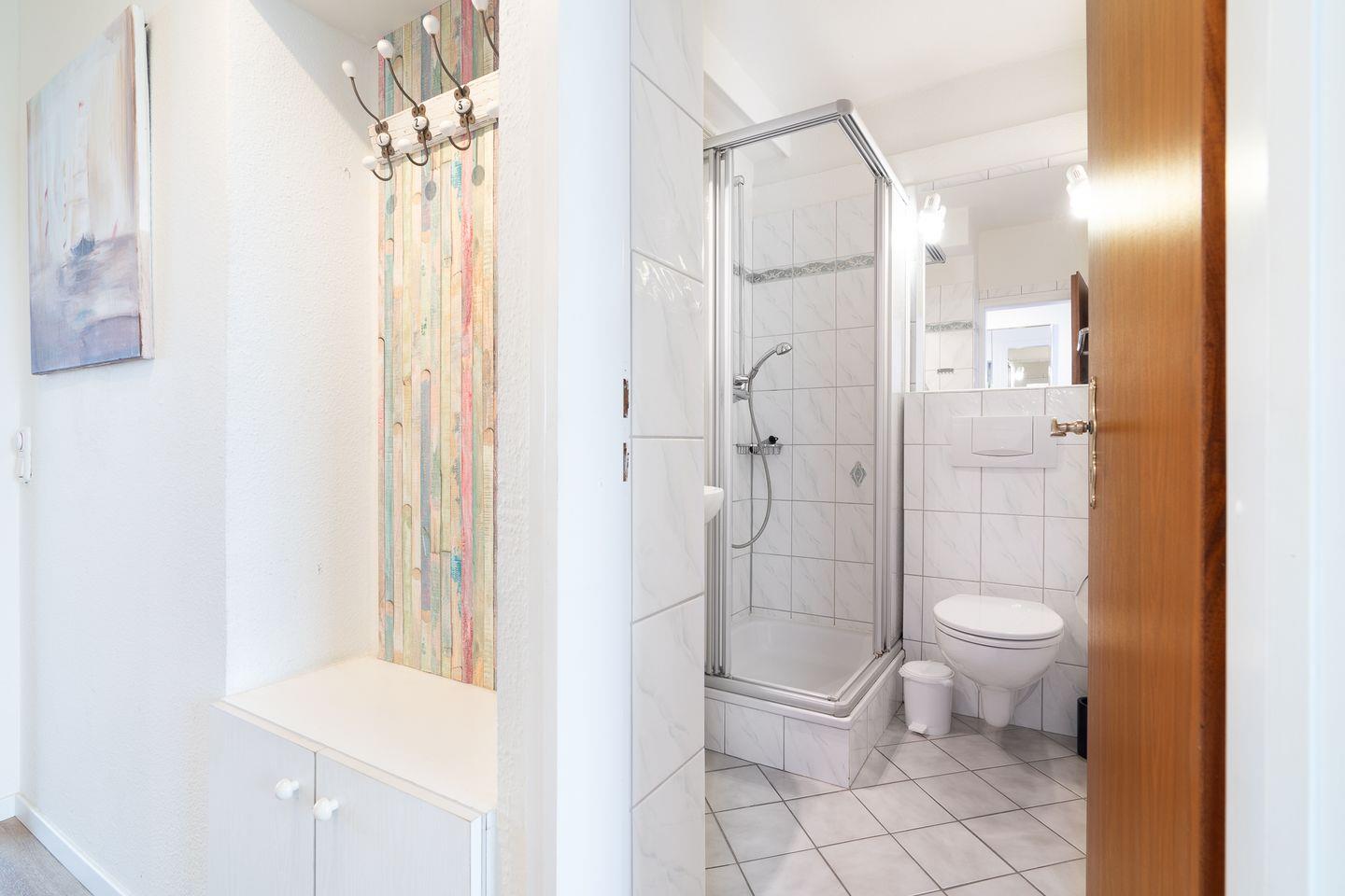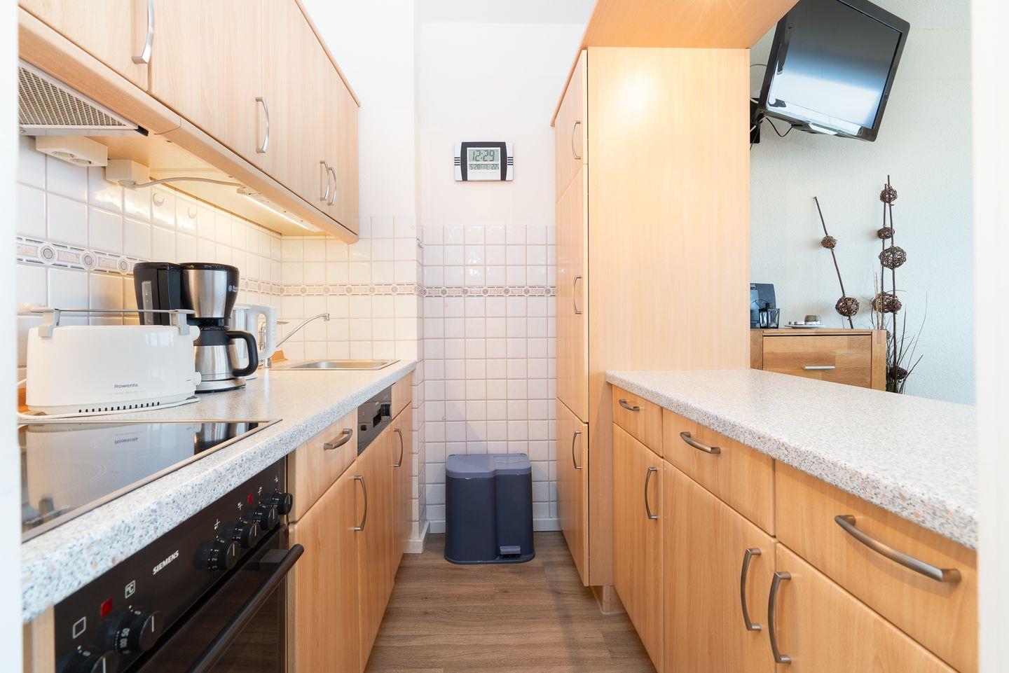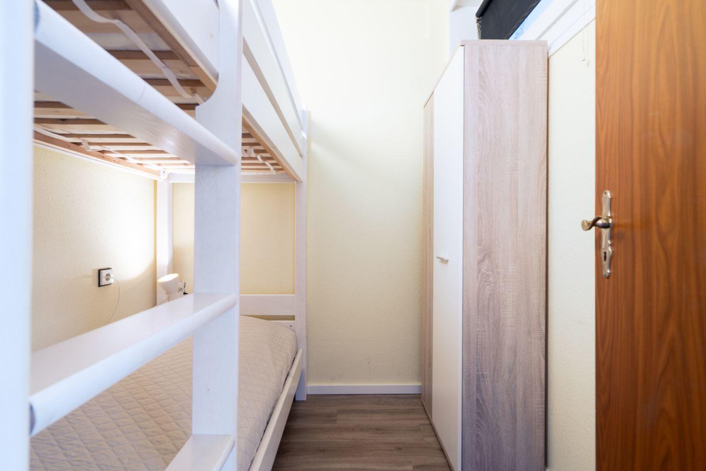 Die Wohnung befindet sich in der 2. Reihe der Terrassenhäuser in unmittelbarer Strandnähe und ist ideal für Ihren entspannten Strandurlaub mit der Familie. Über die 1. Reihe hinweg genießen Sie von der 3. Etage aus einen tollen Blick die Küste entlang über die Lübecker Bucht. Vom gemütlichen kombinierten Wohn- und Essbereich mit Esstisch und Sofaecke haben Sie Zugang zum Balkon in Süd-Ost-Lage. Die Küche ist mit Spülmaschine, Backofen und Herd ausgestattet und mit einer Durchreiche zum Essbereich hin offen. Im ersten Schlafraum steht ein Doppelbett (140 cm x 200 cm), im zweiten Schlafraum ein Etagenbett (jeweils 80 x 180 cm). Beide Schlafräume haben ein Fenster, das Duschbad ist hingegen innenliegend. Ohne eine Straße überqueren zu müssen, sind es nur wenige Gehminuten zum schönen Sandstrand. Der PKW Stellplatz befindet sich vor dem Haus.