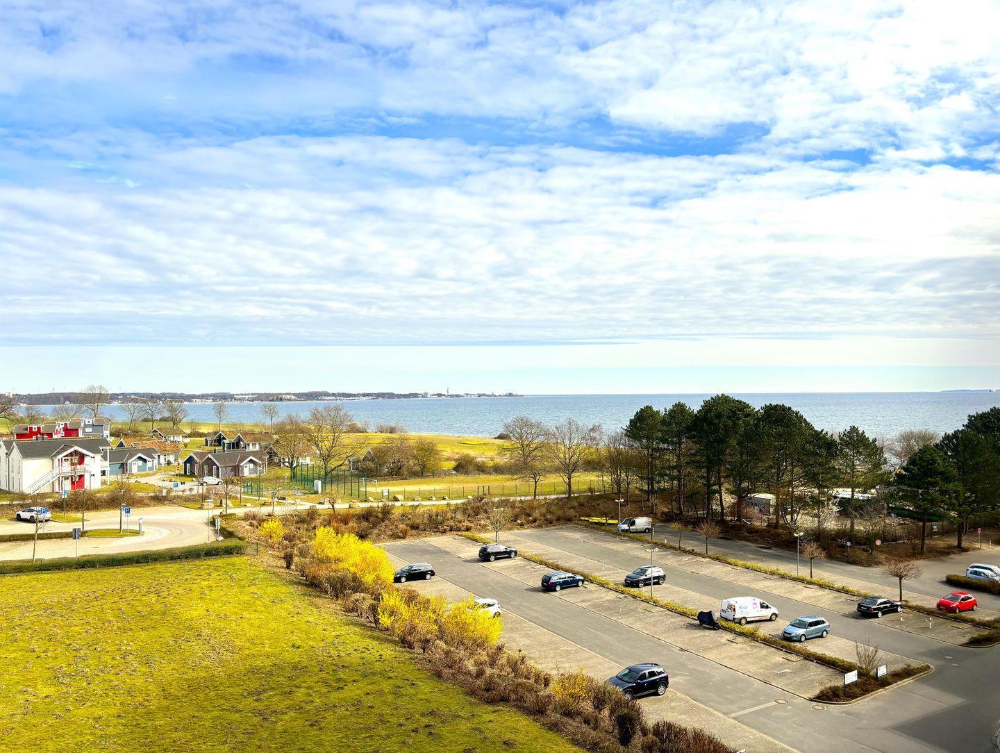 Moderne 2-Zimmer-Ferienwohnung mit Balkon und Blick auf die Lübecker Bucht, nur wenige Schritte vom Strand entfernt.