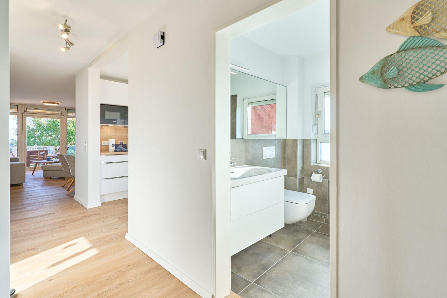 Eine moderne, komplett ausgestattete Küche steht Ihnen zur Verfügung, in der Sie Ihre Lieblingsgerichte zubereiten können. Das neu renovierte Duschbad bietet Ihnen Komfort und Stil. Der Höhepunkt dieser Wohnung ist der atemberaubende Blick auf die Ostsee, den Sie sowohl vom Wohnzimmer als auch vom Balkon aus genießen können. Erleben Sie magische Sonnenaufgänge und den beruhigenden Klang der Wellen direkt von Ihrem Wohnbereich aus.