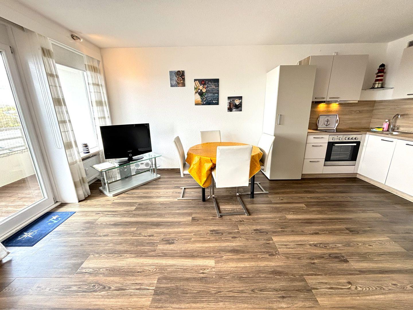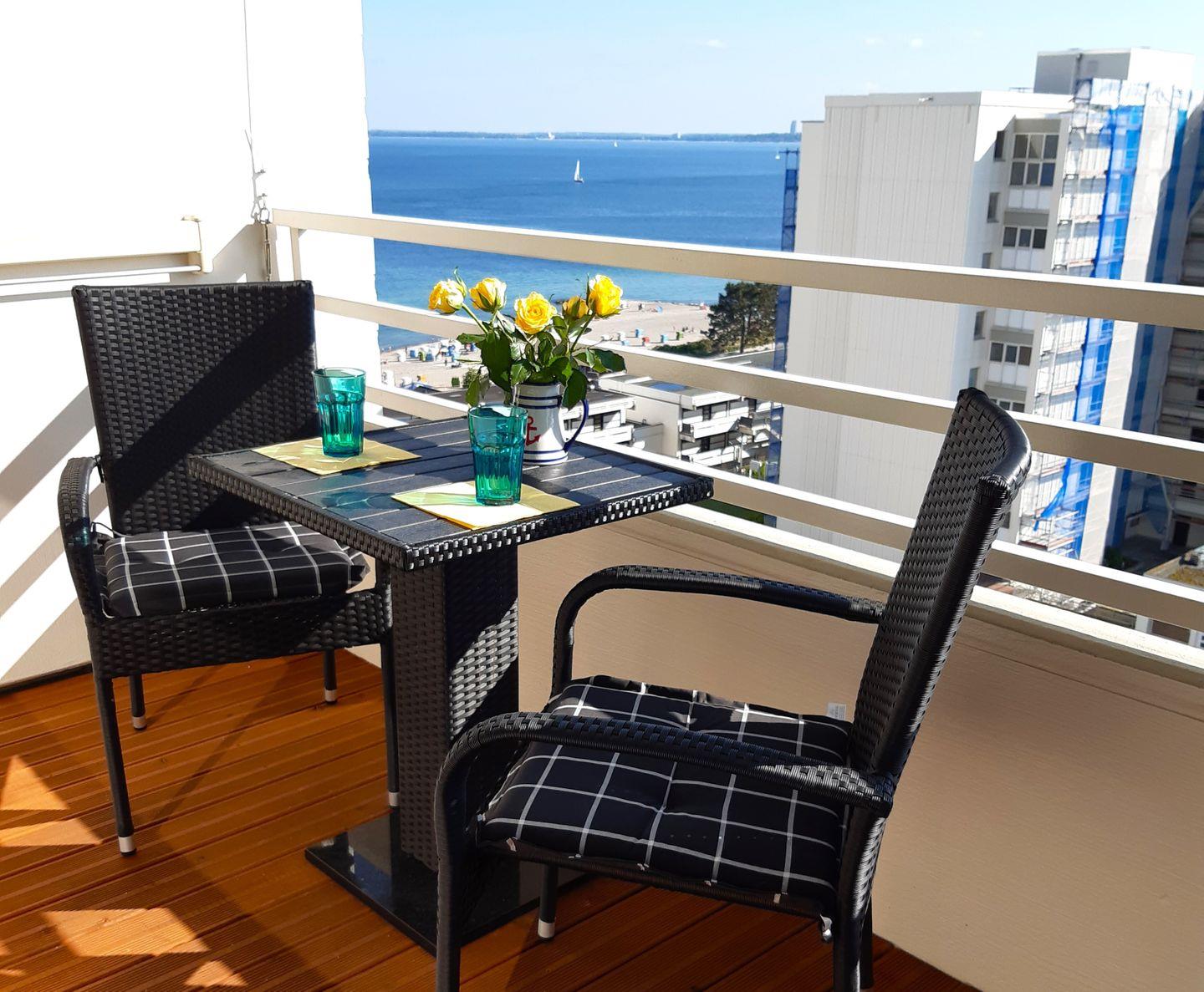 Diese schöne Wohnung liegt in der 7. Etage eines Hochhauses und ist für bis zu vier Personen geeignet. Vom Balkon aus haben Sie über die Häuser der Anlage hinweg Sicht auf die Ostsee und die Lübecker Bucht. Die Küche ist mit Backofen und Herd ausgestattet und in den kombinierten Wohn- und Essbereich integriert. Hier steht auch ein bequemes Schlafsofa (140 cm x 200 cm). Im Schlafraum stehen zwei Einzelbetten (je 90 cm x 190 cm), die man nicht zusammenstellen kann. Das hell geflieste Bad hat eine Dusche und ein Oberlicht zum Lüften. Ohne eine Straße überqueren zu müssen, sind es nur wenige Fußschritte. PKW-Stellplatz inklusive.
