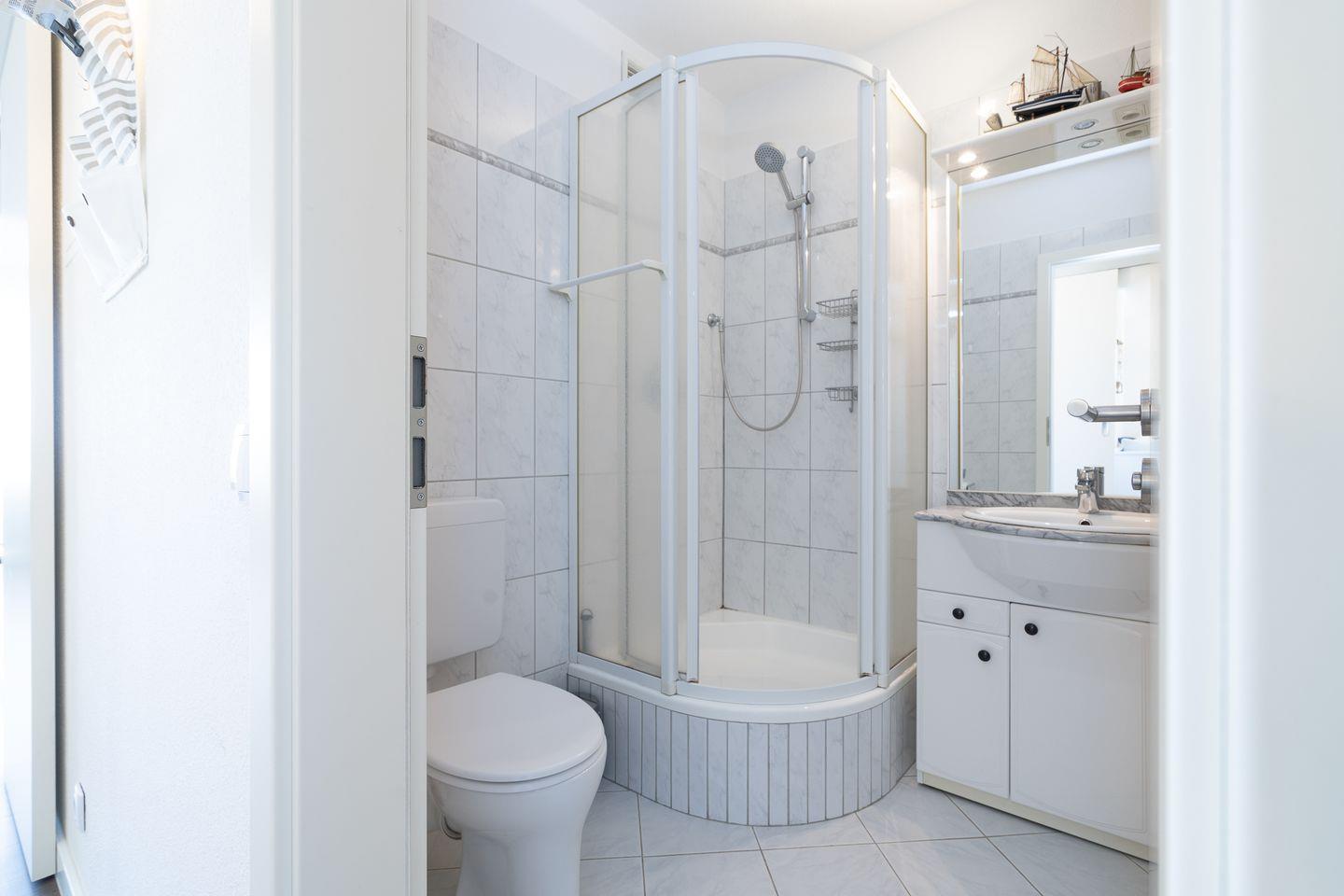 Diese helle und gemütliche Ferienwohnung liegt in der 2. Etage mit Balkon, von dem aus Sie den Blick auf die Ostsee über die Wohnanlage hinweg genießen können. Vom kombinierten Wohn- und Essbereich haben Sie Zugang zum möblierten Balkon. Die mit Backofen und Herd ausgestattete Küche ist mit einer Durchreiche zum Wohn- und Essbereich hin offen. Der erste Schlafraum verfügt über ein Doppelbett (2x 90 cm x 200 cm). Im zweiten Schlafraum steht ein Einzelbett (80 cm x 200 cm), das man zu einem Doppelbett ausziehen kann (dann 160 cm x 200 cm). Das modernisierte Duschbad ist innenliegend. Zum Strand sind es nur wenige Fußschritte. PKW-Stellplatz inklusive.