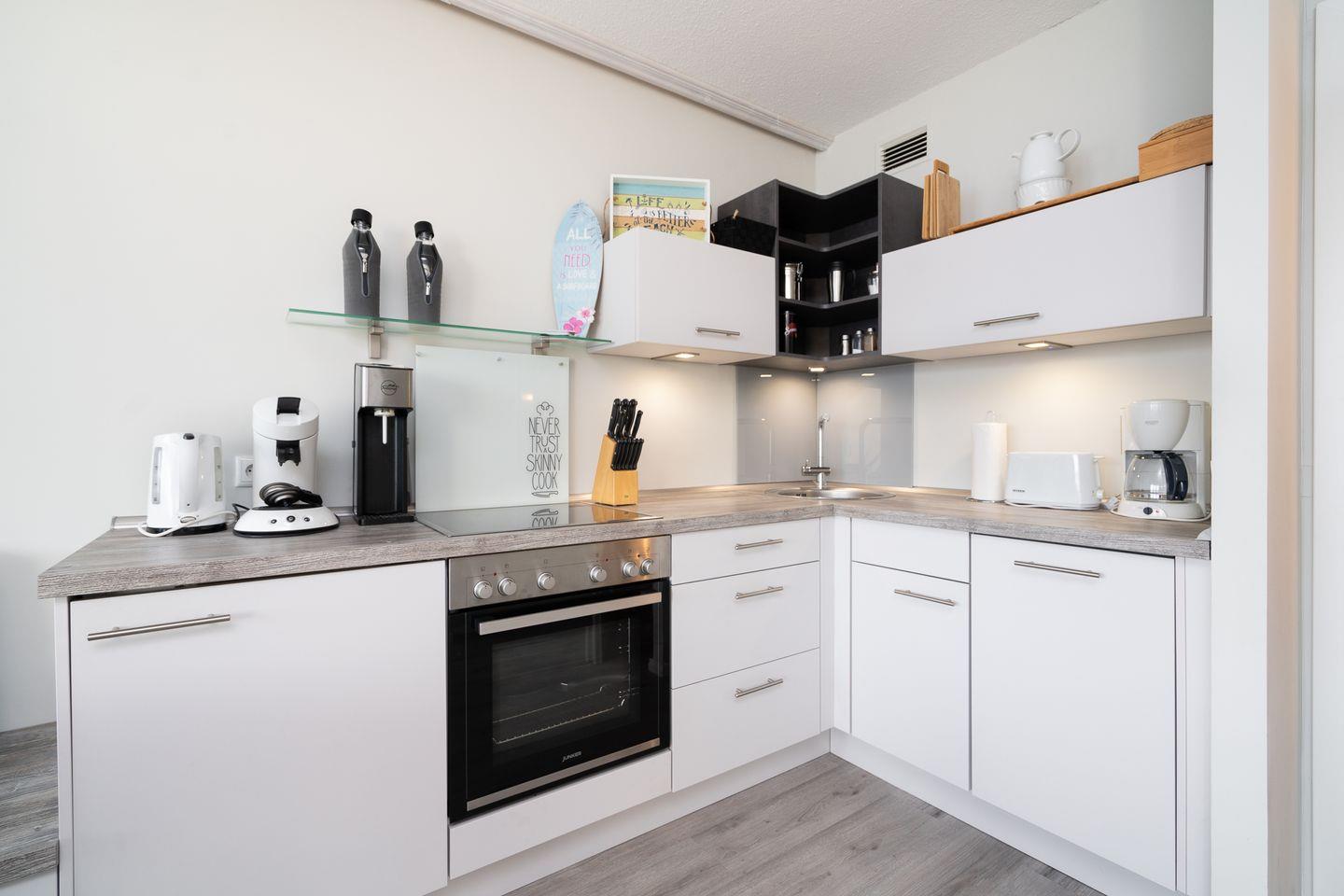 Die moderne 2-Zimmerwohnung liegt in der 5. Etage mit Balkon und ist für bis zu vier Personen geeignet. Vom kombinierten Wohn- und Essbereich mit offener Küche haben Sie Zugang zum Balkon mit herrlichen Blick über die Lübecker Bucht. Die Küche ist mit Spülmaschine, Backofen und Herd ausgestattet. Im Schlafzimmer stehen zwei Einzelbetten. Das Wohnzimmer verfügt über ein Schlafsofa. Das moderne Duschbad ist innenliegend. PKW-Stellplatz inklusive. Zum Strand sind es nur wenige Minuten zu Fuß.