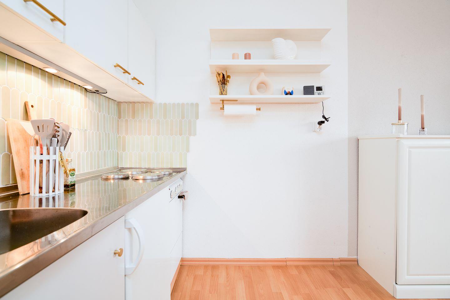Hier erwartet Sie ein modernes und liebevoll eingerichtetes 1-Raum-Appartement in der 7. Etage, das mit einer Größe von 33 qm für 2-3 Personen geeignet ist. Vom kombinierten Wohn-/ Schlaf- und Essbereich mit offener Küche haben Sie Zugang zum Balkon mit seitlichem Blick zur Ostsee und über die Lübecker Bucht. Die kleine, aber feine Küche ist mit Backofen und Herd ausgestattet. Im offenen Schlafbereich befindet sich ein gemütliches Doppelbett (180 x 200 cm). Zudem steht Ihnen ein elegantes Schrankbett (90 x 200 cm) zur Verfügung. Das moderne Duschbad ist innenliegend. Zum flachabfallenden Sandstrand geht man nur 2 Minuten und braucht dabei keine Straße zu überqueren. PKW-Stellplatz inklusive.