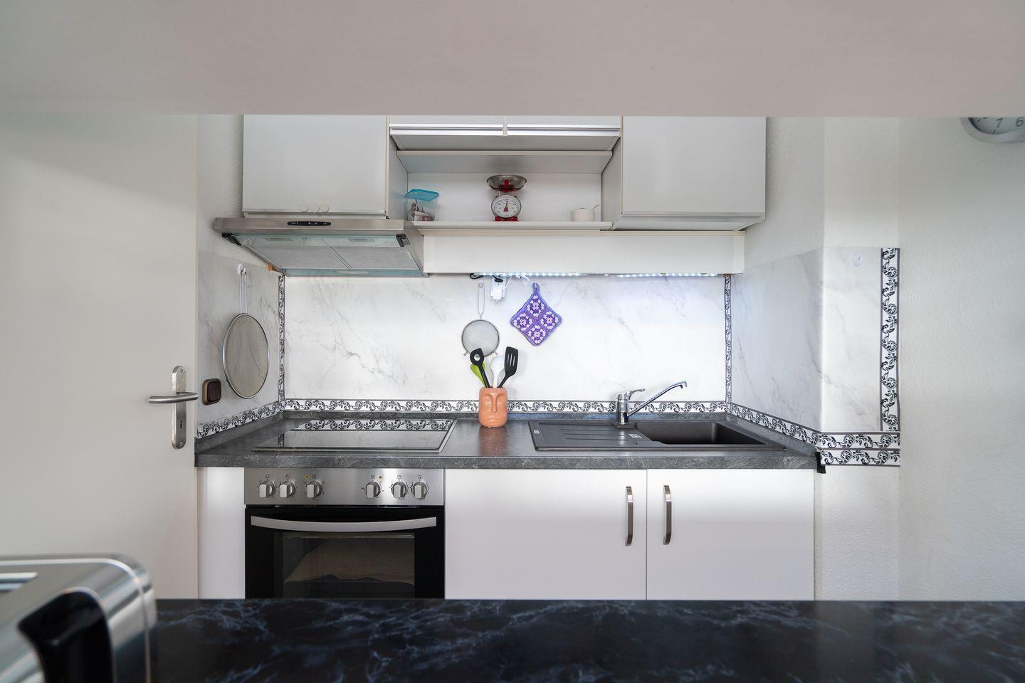 Die Gemütlichkeit der Ferienwohnung wird durch einen Wohnbereich komplettiert, der mit einem Sofa und einem modernen TV ausgestattet ist, sodass Sie sich nach einem erlebnisreichen Tag erholen können. WLAN steht Ihnen zur Verfügung, sodass Sie auch im Urlaub stets verbunden bleiben können. Darüber hinaus bietet die Unterkunft auch einen Essbereich und eine Sofaecke, die für gesellige Zusammenkünfte einladen.