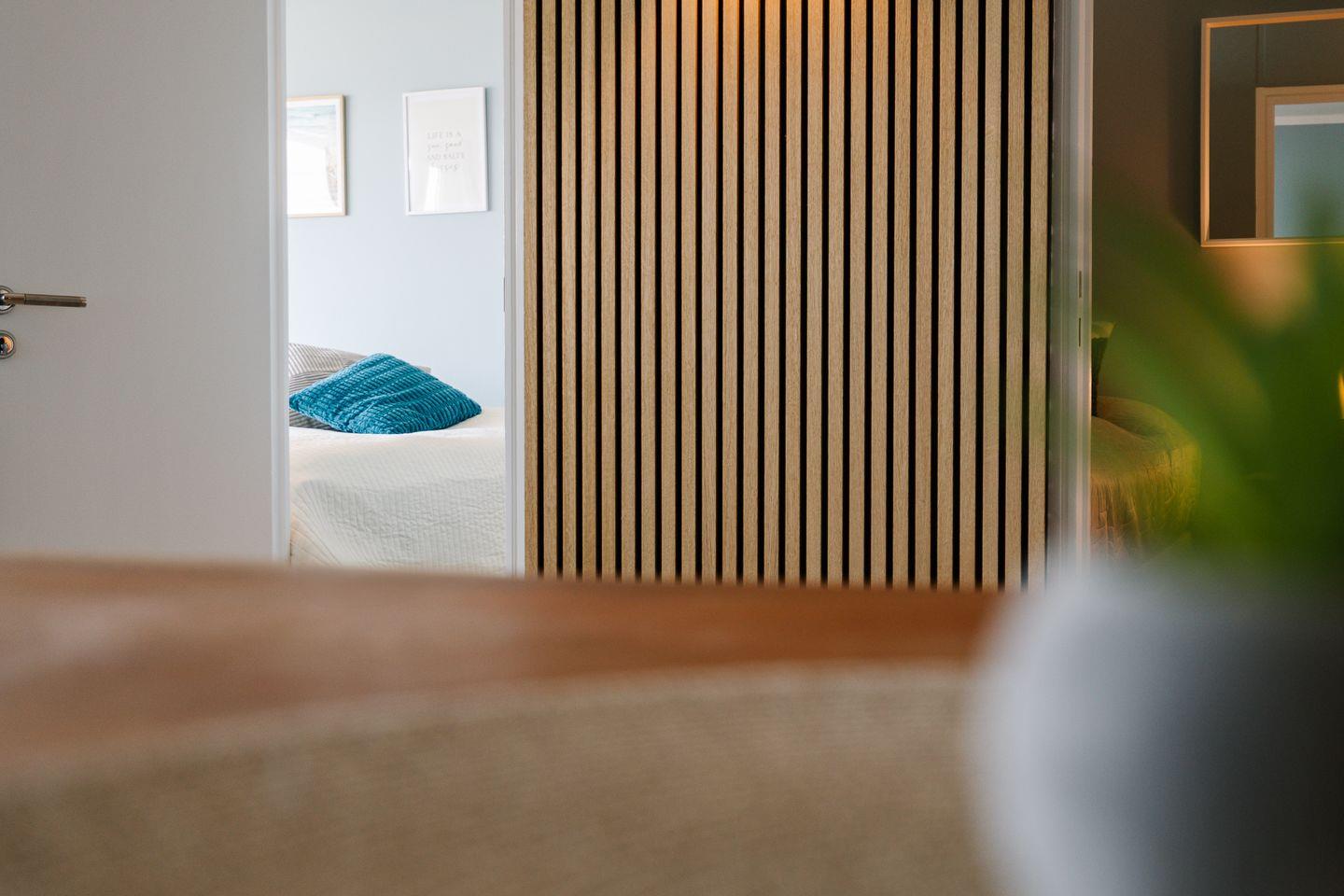 Die Ferienwohnung bietet ein Schlafzimmer mit einem großen bequemen Doppelbett (2x 90 cm x 200 cm) und fantastischem Meerblick. Ein weiteres Schlafzimmer (innenliegend) verfügt über ein Einzelbett (90 cm x 200 cm) und einen großen Kleiderschrank.