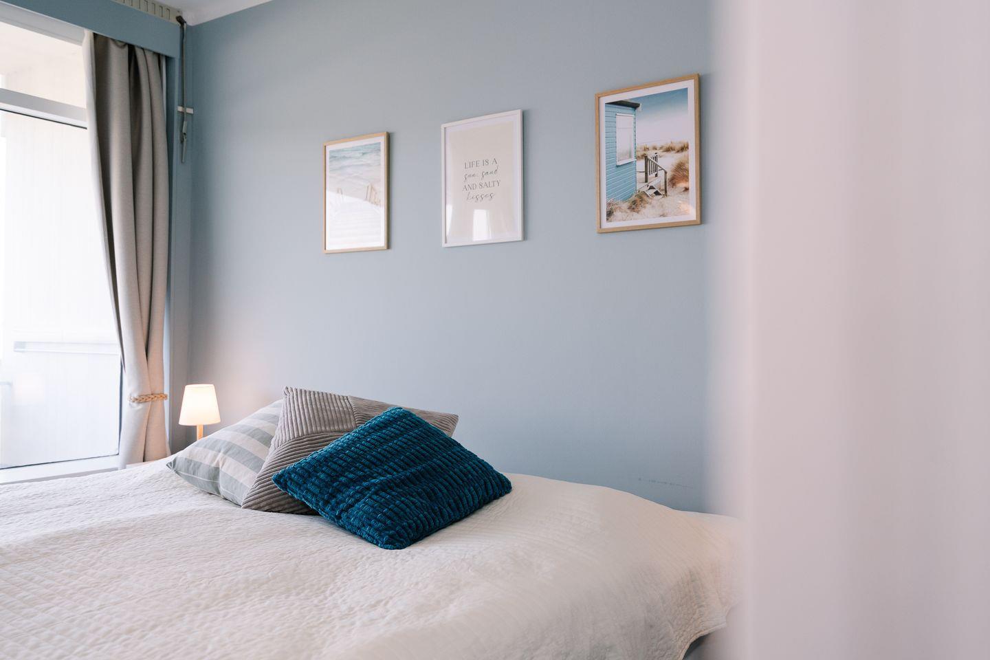 Die Ferienwohnung bietet ein Schlafzimmer mit einem großen bequemen Doppelbett (180 cm x 200 cm) und fantastischem Meerblick. Ein weiteres Schlafzimmer (innenliegend) verfügt über ein Einzelbett (90 cm x 200 cm) und einen großen Kleiderschrank.