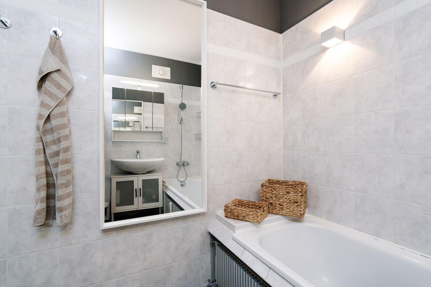Das innenliegende Badezimmer ist mit Badewanne, Spiegelschrank, Föhn, Waschbecken und WC ausgestattet und lässt somit keine Wünsche offen.