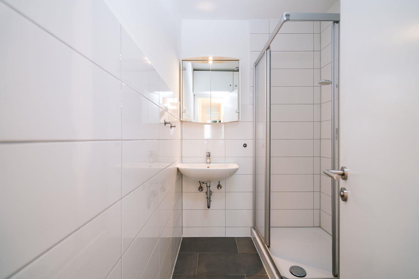 Das innenliegende Badezimmer ist mit Dusche, Spiegelschrank, Handtuchheizung, Waschbecken und WC ausgestattet und lässt somit keine Wünsche offen.