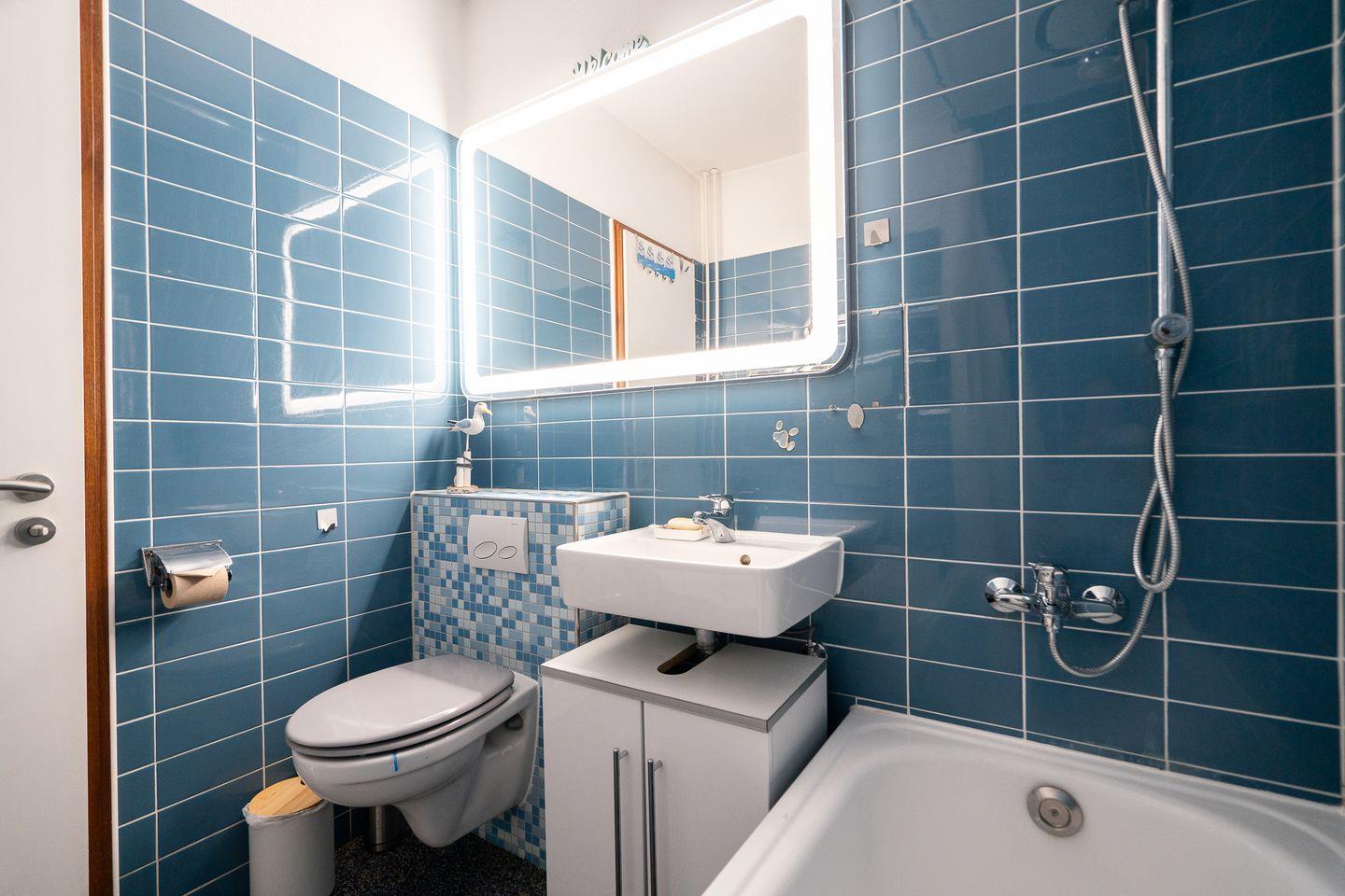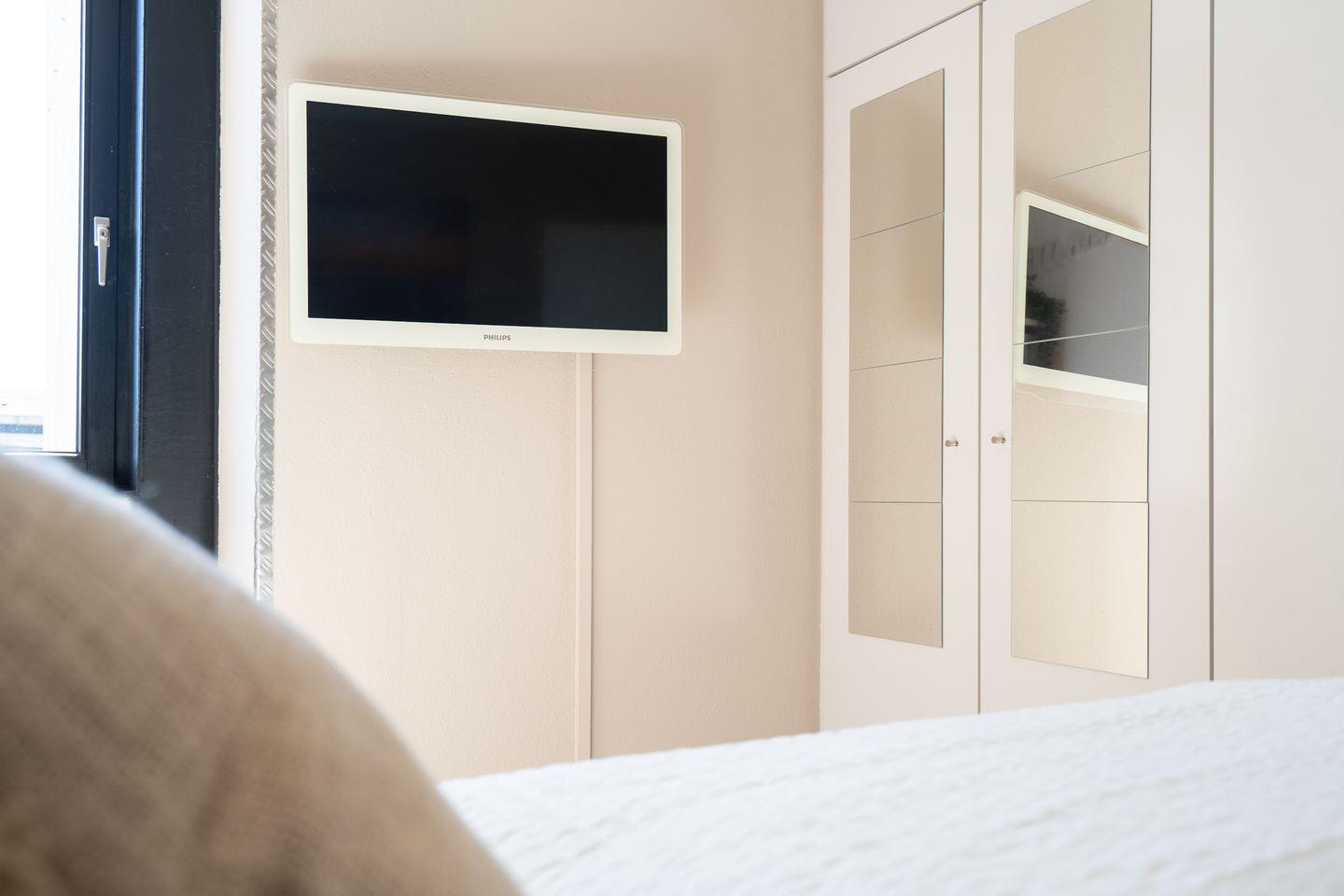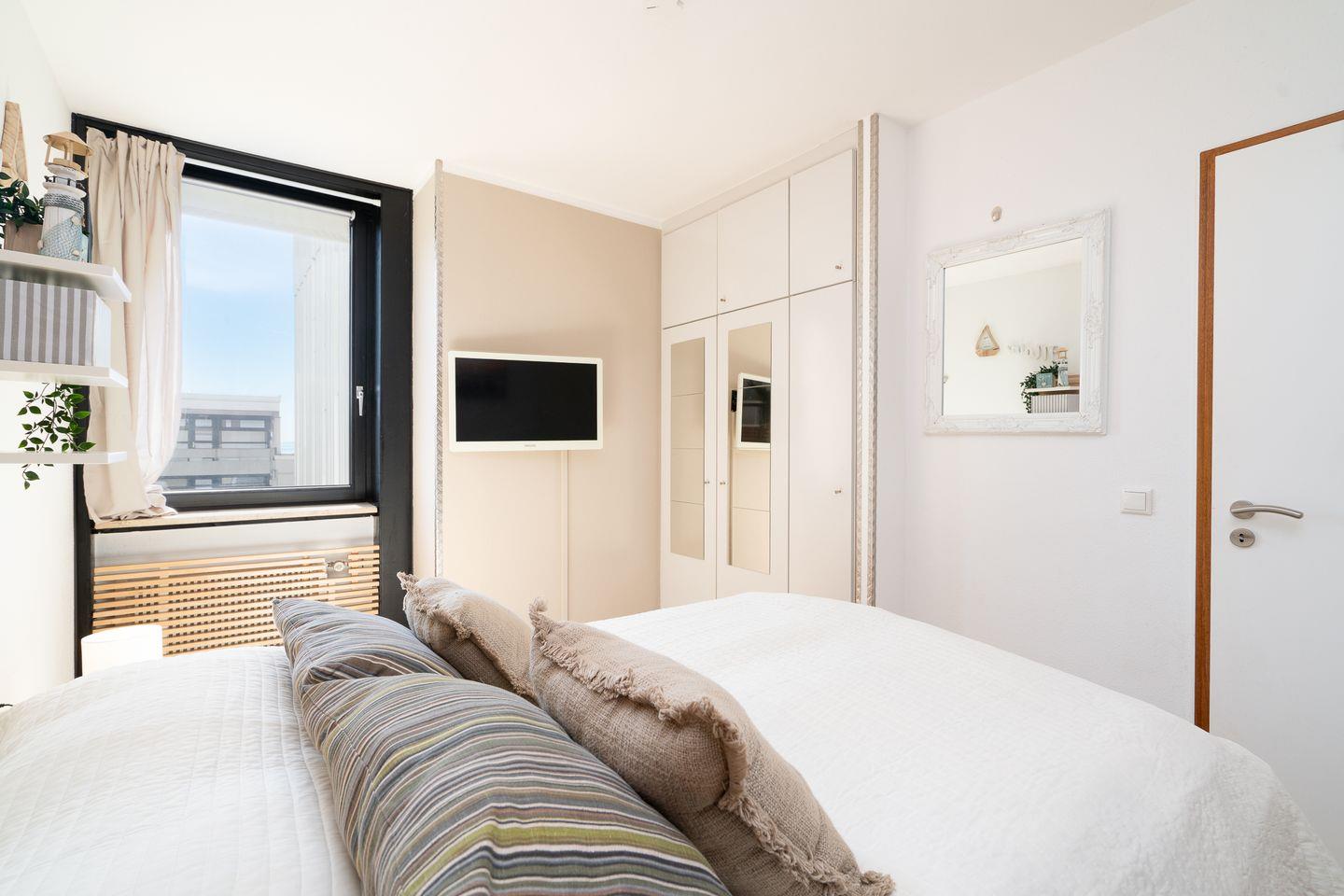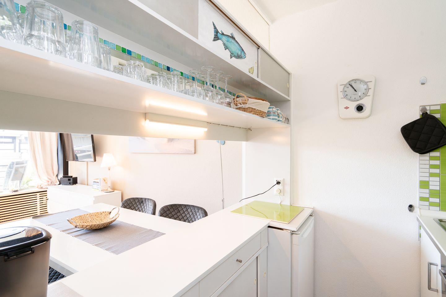 Die Unterkunft ist modern und geschmackvoll ausgestattet. Ein französisches Doppelbett (160 x 200 cm, zwei Matratzen) im Schlafzimmer mit Fenster und zusätzlichem Fernseher bietet erholsamen Schlaf, während das geräumige Wohnzimmer mit einem Schlafsofa (160 cm x 200 cm) zum Entspannen einlädt. Der Fernseher mit einer Bildschirmgröße von 35 bis 44 Zoll, Radio und WLAN sorgen für gute Unterhaltung. Die offene Küche ist mit allen erforderlichen Geräten und Utensilien ausgestattet, darunter Cerankochfeld, Backofen, Kühlschrank mit Gefrierfach, Spülmaschine, Wasserkocher, Toaster und Kaffeemaschine. Der Essbereich ist direkt angrenzend eingerichtet und ermöglicht Mahlzeiten in gemütlicher Atmosphäre. Das Badezimmer verfügt über eine Badewanne und ist innenliegend. Zur weiteren Ausstattung zählt ein Balkon, auf dem Sie die frische Meeresluft genießen können. Balkonmöbel und Sonnenschutz sind vorhanden. Ein PKW-Stellplatz ist inklusive. Zum Strand sind es nur wenige Schritte.