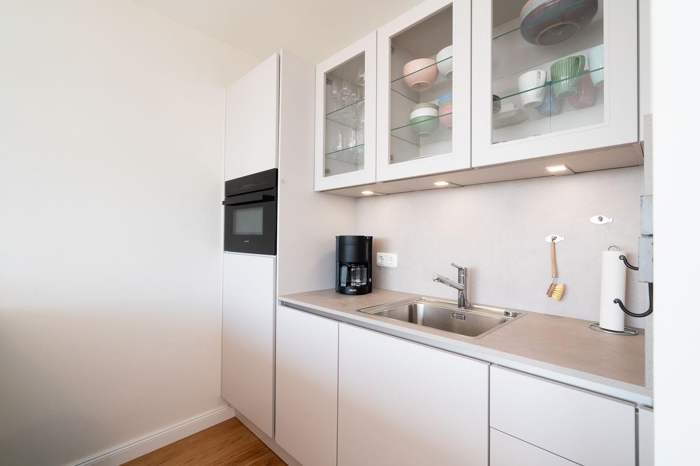 Das App. 115 liegt im 2. Stock in einer attraktiven Ferienanlage, nur 50 Meter vom Sandstrand entfernt und ist für 2 Personen geeignet. Es bietet einen überdachten Balkon mit außergewöhnlichem Meerblick, eine offene Küche und ein gemütliches Wohnzimmer mit Esstisch und Sofaecke. Die Küche ist mit Backofen, Herd und Spülmaschine ausgestattet, das Schlafzimmer mit bequemen Doppelbett. Modernes Bad mit bodengleicher Dusche. PKW-Stellplatz inklusive.