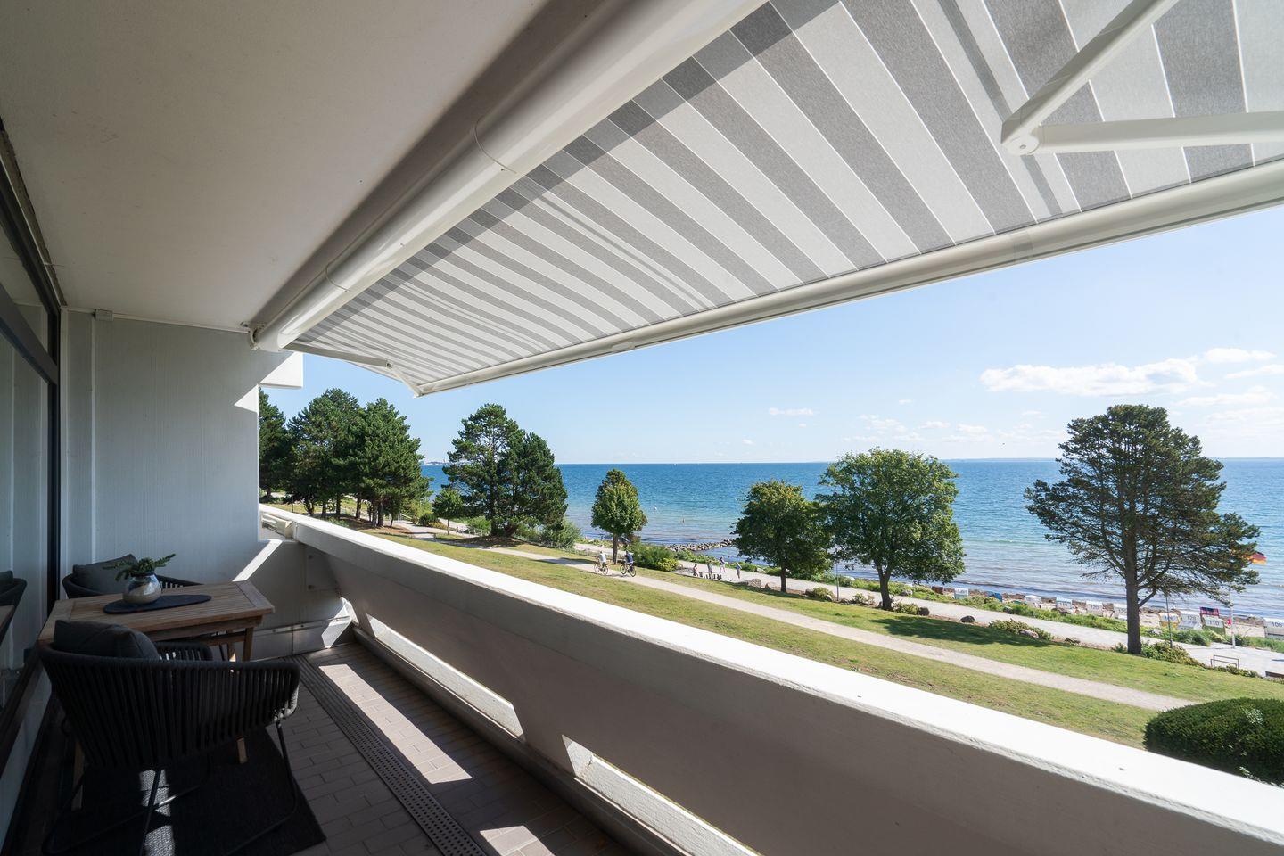Modernes Apartment im Ferienpark Sierksdorf mit Balkon und außergewöhnlichem Meerblick, nur 50 Meter vom Sandstrand entfernt.