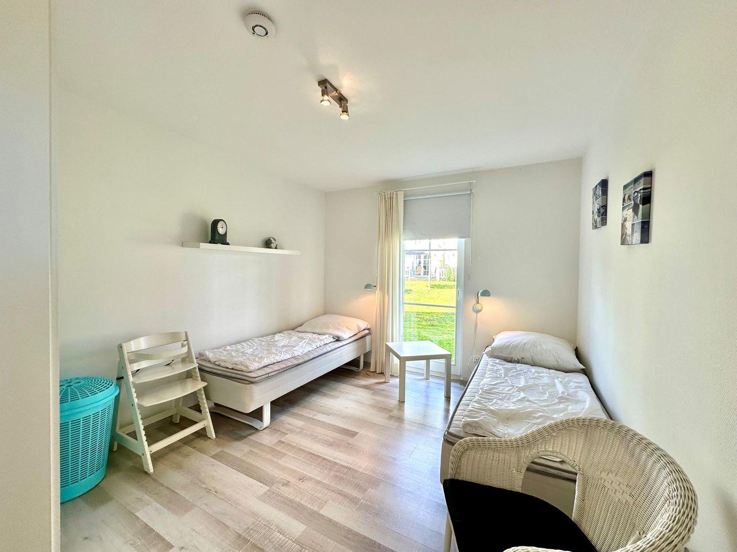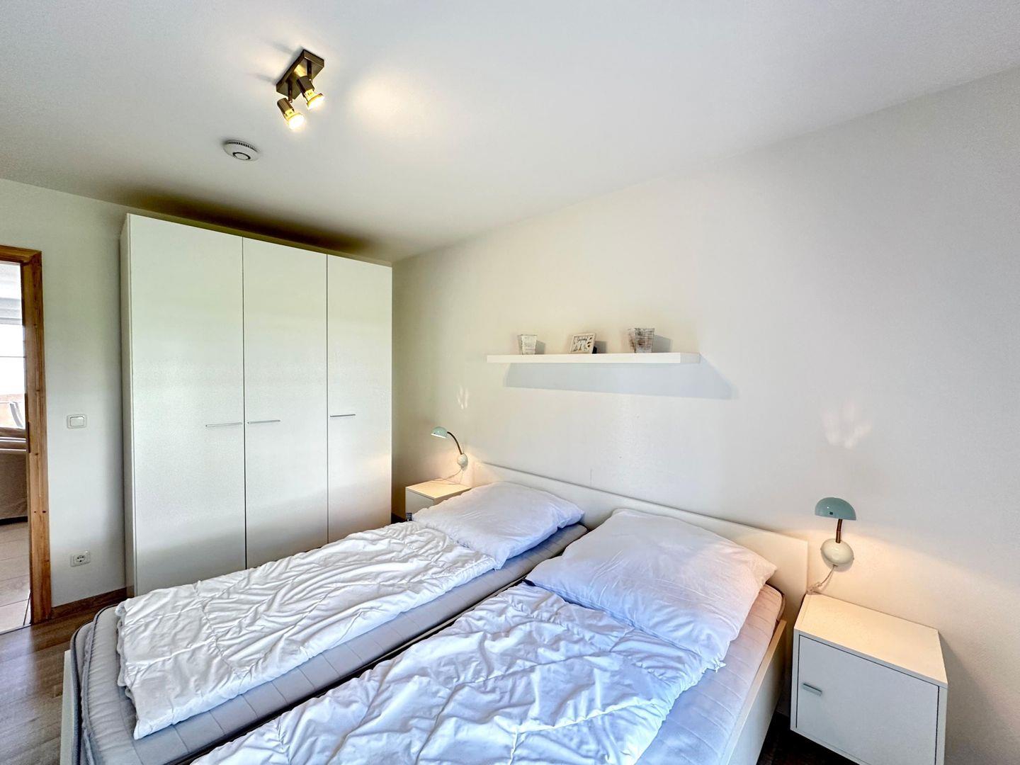 Im ersten der zwei gemütlichen und geschmackvoll eingerichteten Schlafräume befindet sich ein Doppelbett und im zweiten Schlafraum stehen zwei Boxspring-Einzelbetten.