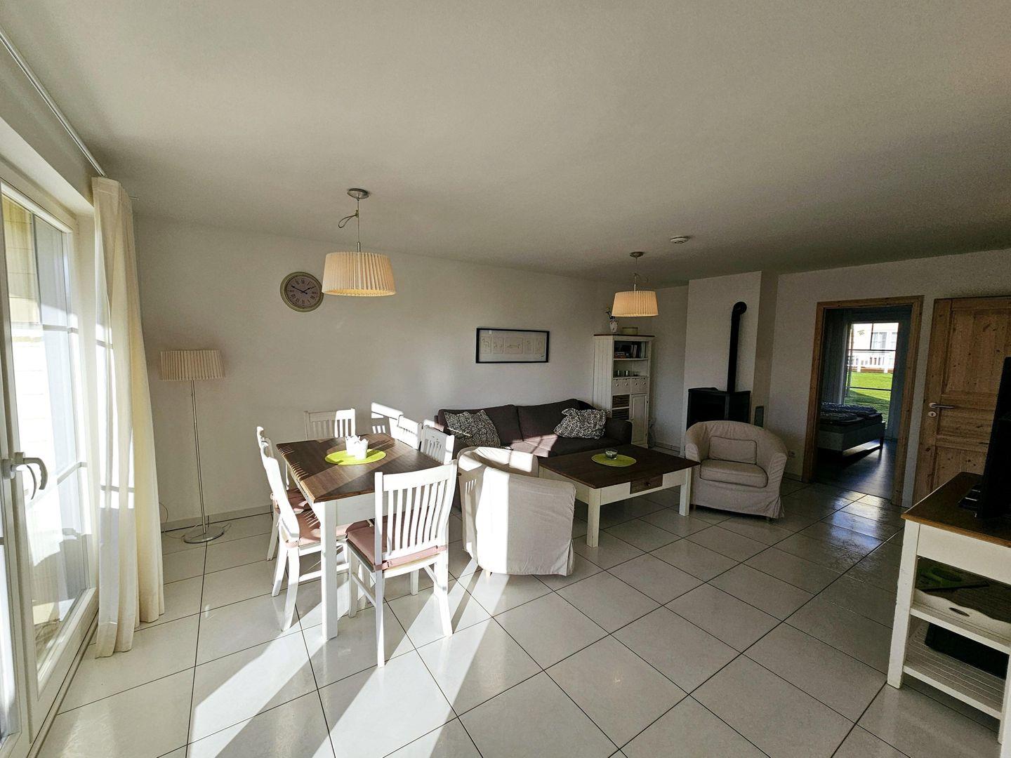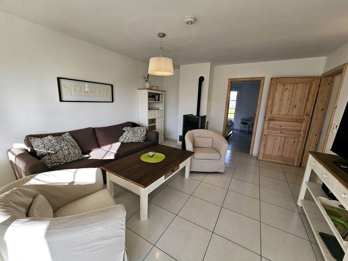 Auf 70 qm stehen Ihnen ein geräumiges Wohn-/Esszimmer mit Holzpelletofen und einer zum Wohnraum offenen Küche, 2 Schlafräume und ein Bad mit Sauna zur Verfügung.