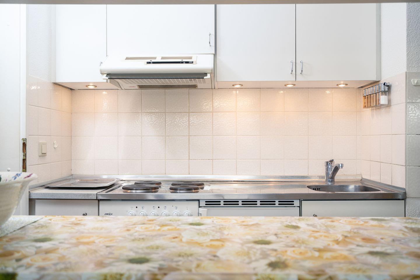 Im Wohnbereich lädt ein Sofa zum Verweilen und Entspannen ein, während Sie dank kostenlosem WLAN und einem Fernseher auch bei schlechtem Wetter bestens unterhalten werden. Die offene Küche ist direkt an das Wohnzimmer angrenzend und mit einer Durchreiche zum Esstisch hin offen. Die Küche ist mit Herd, Backofen und Mikrowelle zweckmäßig ausgestattet. Der große Esstisch bildet den Mittelpunkt für gemeinsame Mahlzeiten.