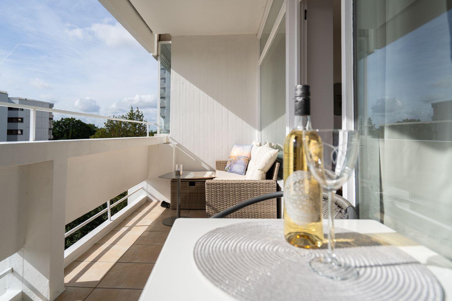Modernes Meerblick-Appartement in Sierksdorf mit Balkon, Schwimmbad und Strandnähe für entspannte Urlaubstage an der Ostsee.
