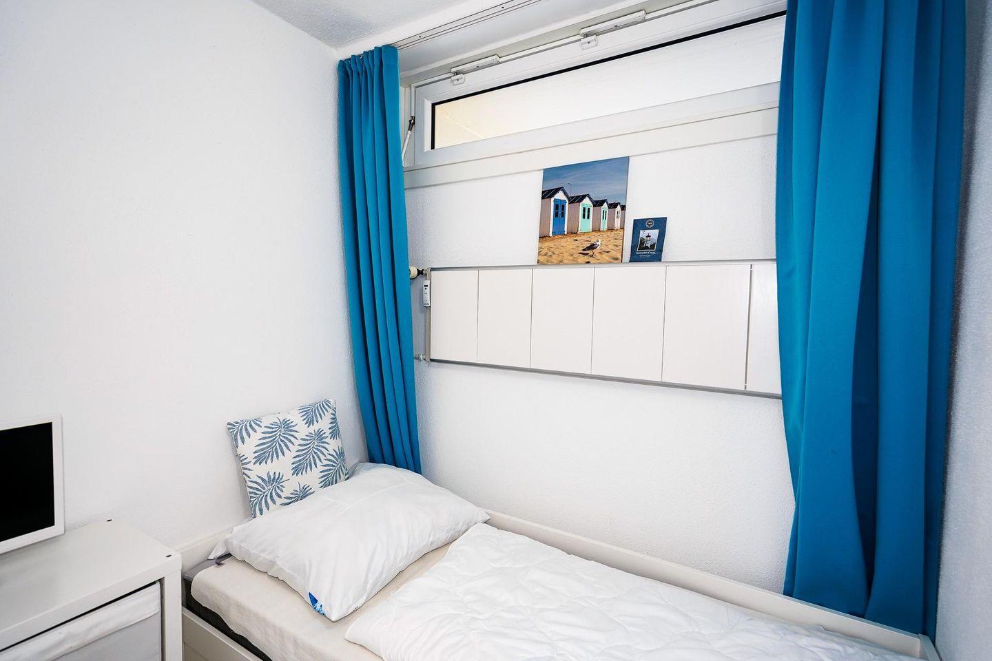 Die im Ferienpark Sierksdorf gelegene Ferienwohnung bietet von der 5. Etage aus einen beeindruckenden Panoramablick über die Lübecker Bucht. Das gemütliche Wohnzimmer ist mit einer zum relaxen hervorragend geeigneten Polstergarnitur eingerichtet, welche auch einen Urlaub mit 4 Personen möglich macht, und verfügt über einen kleinen Essbereich. Zum Wohnkomfort des Ferienappartments gehört ebenfalls ein großer Flachbildfernseher. Obwohl es sich empfiehlt, die kulinarischen Highlights der Region in den vielen nahegelegenen Restaurants zu probieren, können auch in der komplett eingerichteten Küche leckere Gerichte zubereitet werden. Das Schlafzimmer ist mit zwei Einzelbetten sowie ebenfalls einem Fernseher ausgestattet. Das Badezimmer verfügt über eine Dusche. Von dem Parkplatz aus kann die Ferienwohnung direkt mit dem Fahrstuhl erreicht werden.