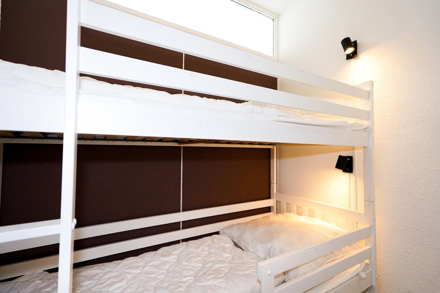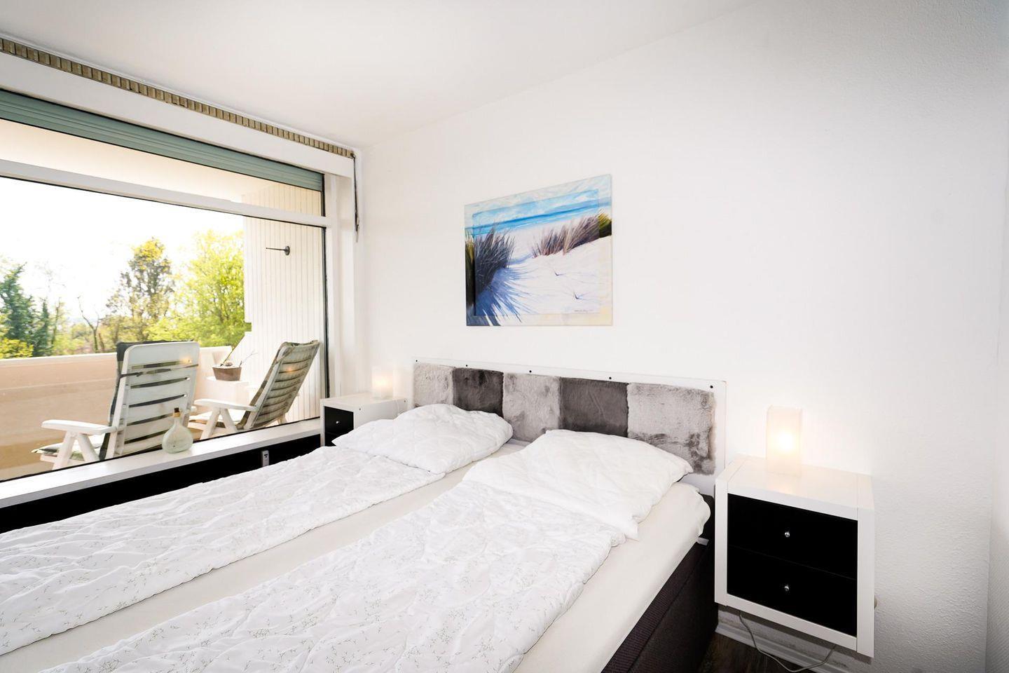 Das Elternschlafzimmer ist mit einem bequemen Boxspringbett (1,80 x 2,00) eingerichtet, Ein Etagenbett (je 0,90 x 1,90) befindet sich im Kinderschlafzimmer. Das geräumige Bad verfügt über eine Dusche. Ein großer Flachbildfernseher im Wohnzimmer zählt natürlich ebenso zur Einrichtung des Appartments. Der ca. 14 qm große Balkon verwöhnt mit einer Aussicht ins Grüne sowie einem Meerblick. Hunde sind in der Ferienwohnung stets gern gesehene Gäste (gegen Gebühr).