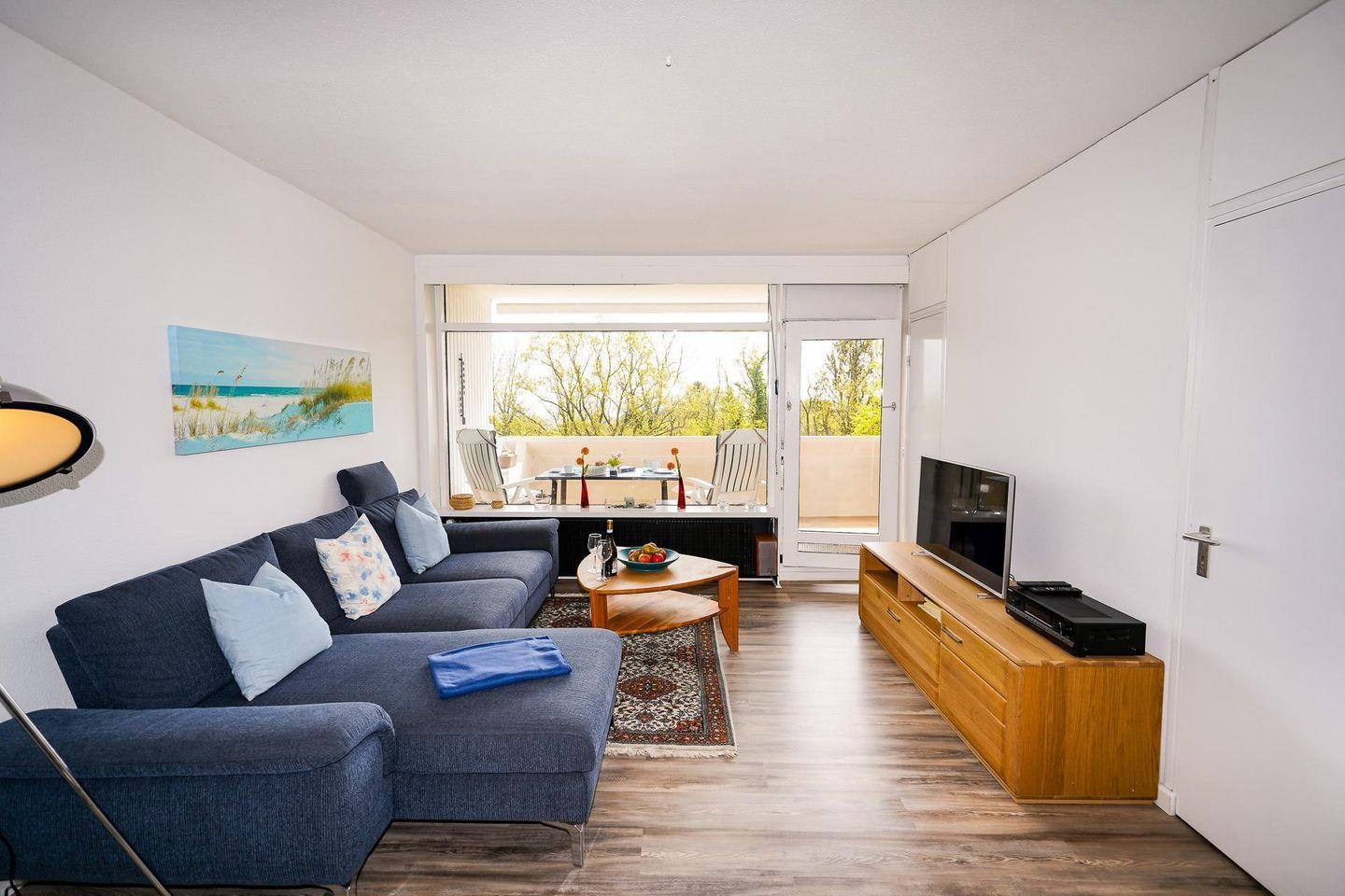 Modernes Panoramic Apartment in Sierksdorf mit Balkon, kleinem Meerblick und familienfreundlicher Ausstattung.