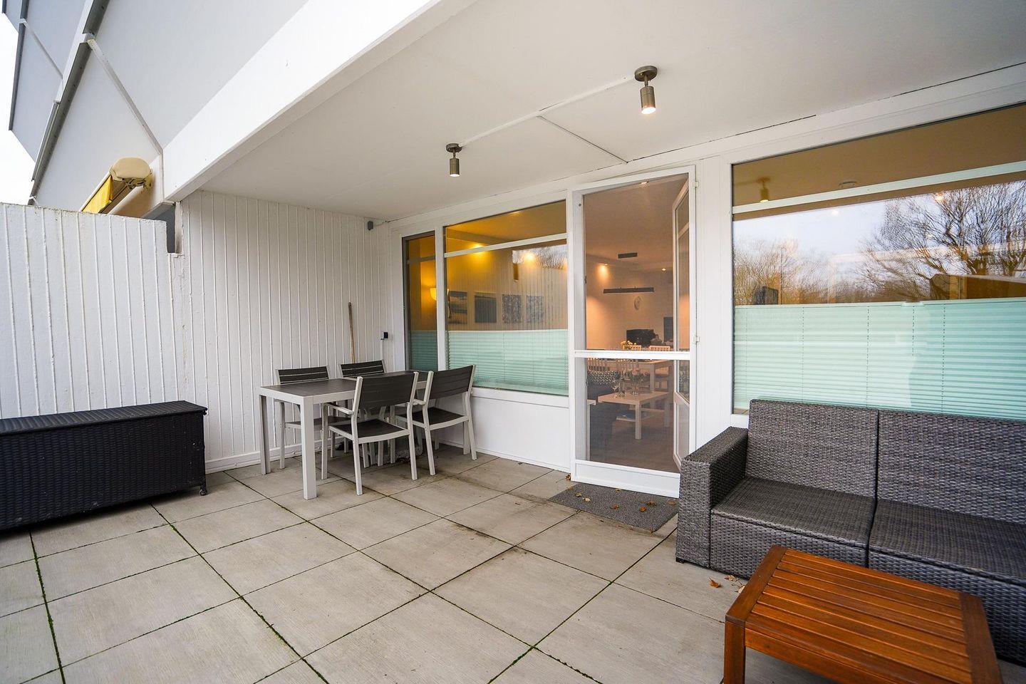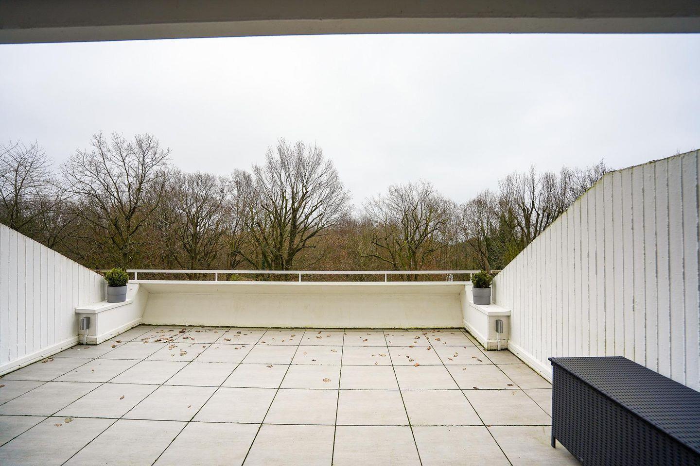 Die 36 qm große Balkon-Terrasse verwöhnt mit einer Aussicht ins Grüne und einem seitlichen Meerblick.
