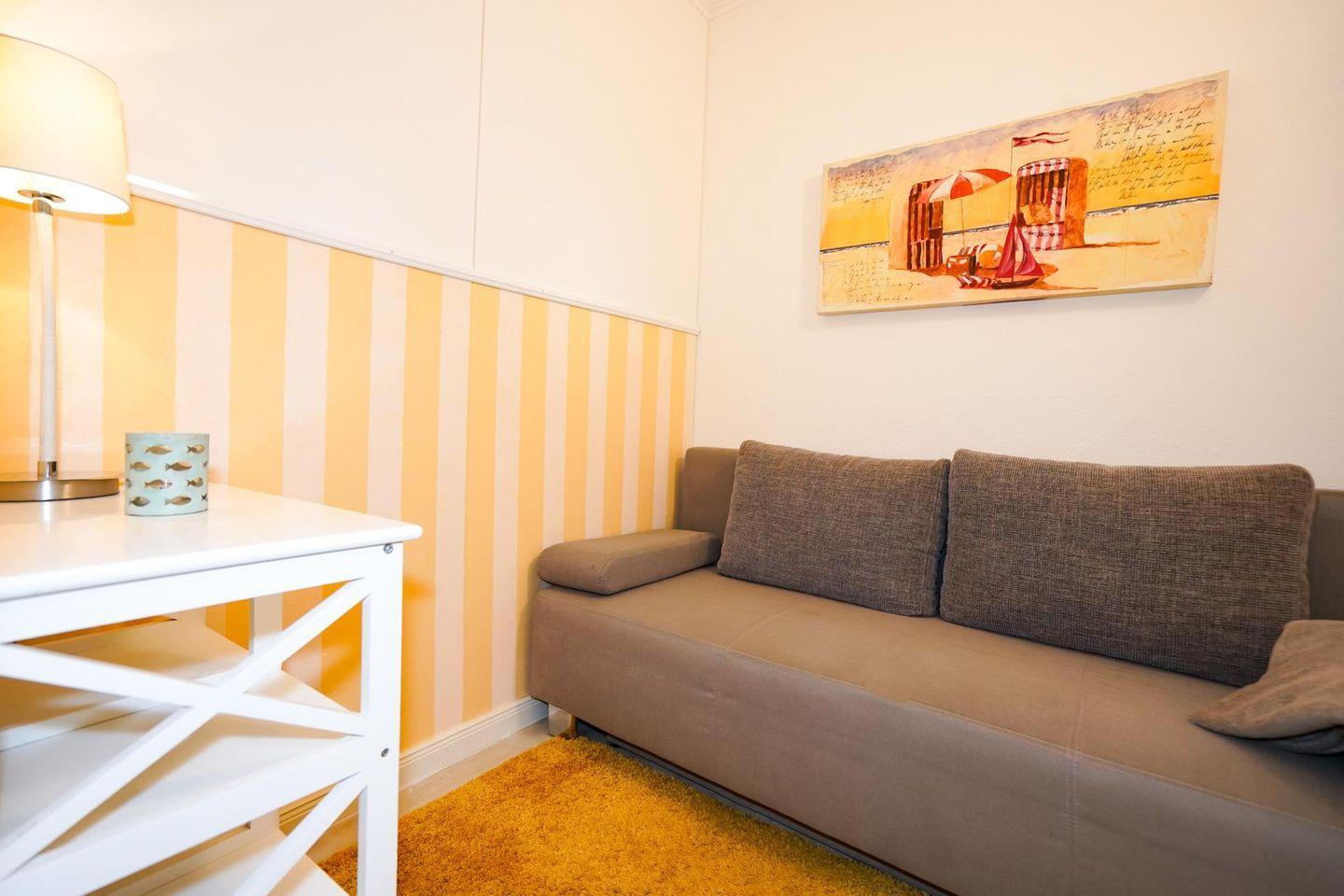 Der große Wohn- Schlafraum ist mit einer offenen Küche und einem Flurteil und wie folgt ausgestattet: Garderobeablage, Doppelschlafcouch (einzeln ausgezogen ca. 80 cm x 200 cm - doppelt ausgezogen Liegefläche ca. 170 cm x k 200 cm), Couchtisch, Schubladenschrank, Stehlampe, Teppich, Wanduhr, Wandpanoramaspiegel (Ostseeblick), Schrank mit Beleuchtung, Glasschrank mit Beleuchtung, Esstisch, 4 Stühle, Wandbilder, Decken-, Wand- Fenster/ Balkonbeleuchtung, Beistelltisch mit Schublade und Ablage. Ein Flachbild TV – Ambilight -48 Zoll mit Radio, Blue-Ray DVD Player, Telefon, Fernglas, Bücher, Spiele, Staubsauger, Rauchmelder uvm.