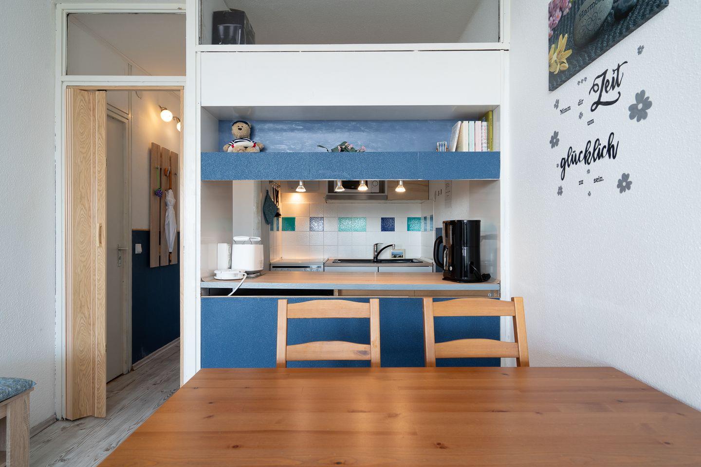Der Wohnbereich bildet das Herzstück der Ferienwohnung und lädt zum Entspannen nach einem Strand- oder Ausflugstag ein. Ein Essplatz bietet ausreichend Raum für gemeinsame Mahlzeiten oder Spieleabende. WLAN sowie ein TV stehen Ihnen in der gesamten Ferienunterkunft zur Verfügung.