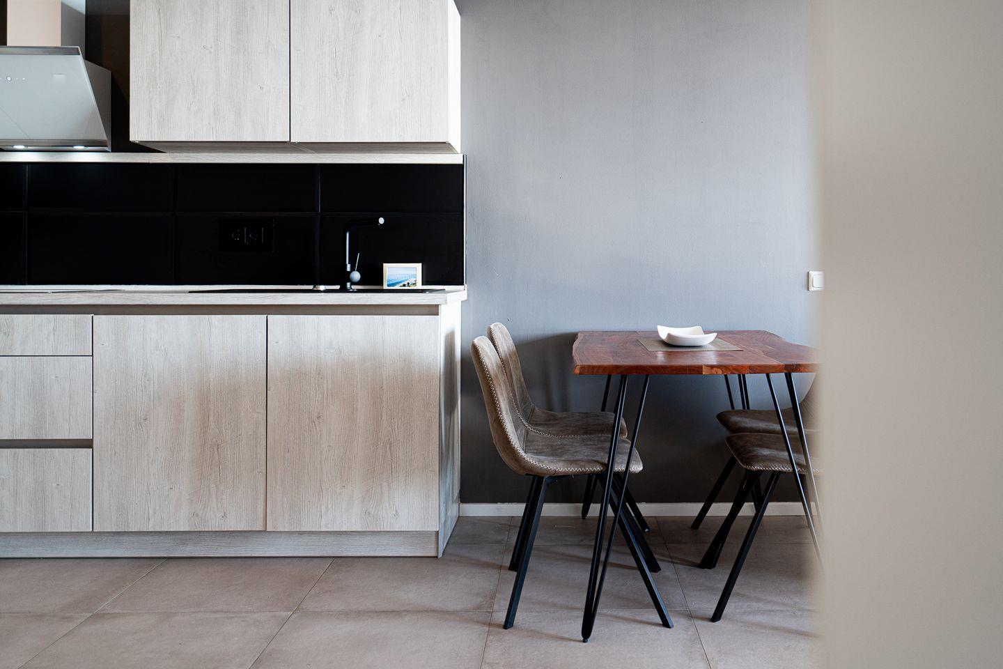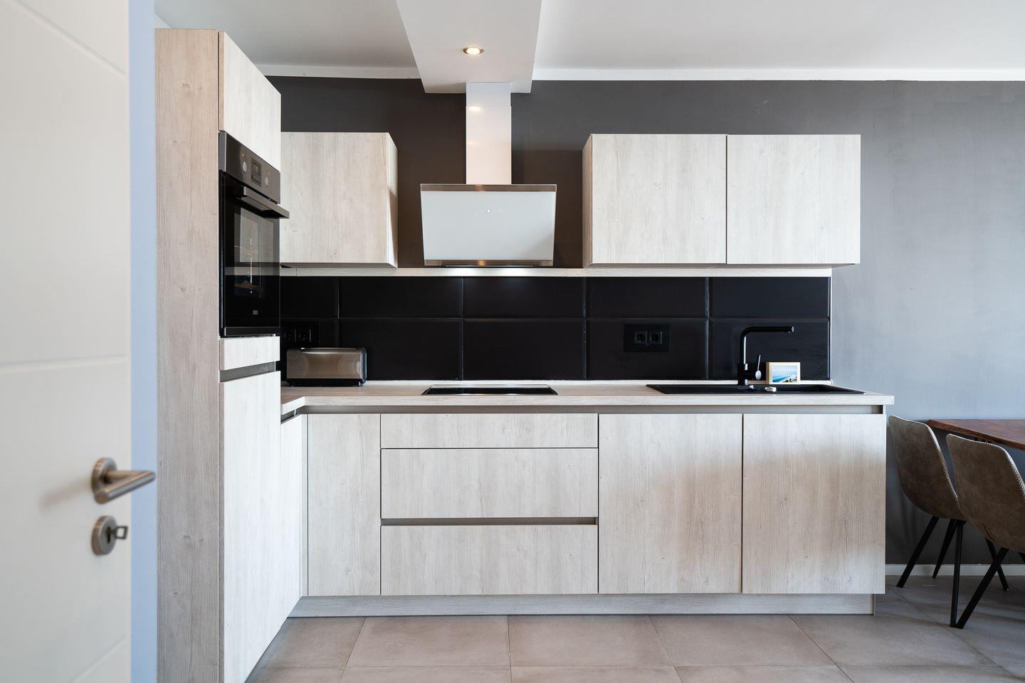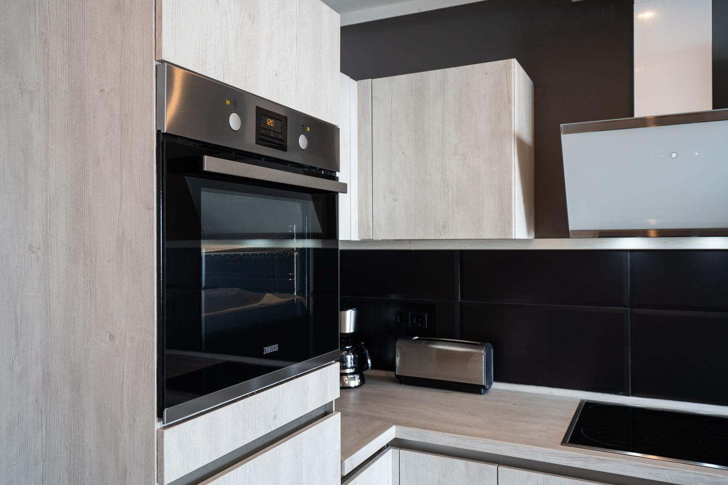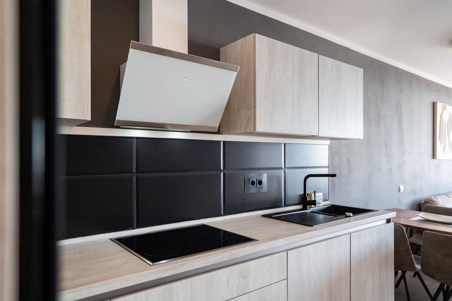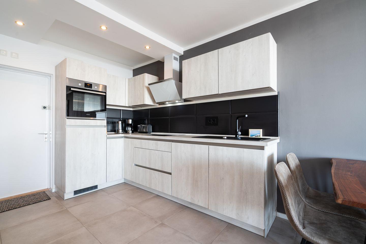Die offene Küche ist modern ausgestattet mit Induktionsherd, Backofen und Kühlschrank. Eine Spülmaschine ist vorhanden und sorgt für zusätzlichen Komfort.