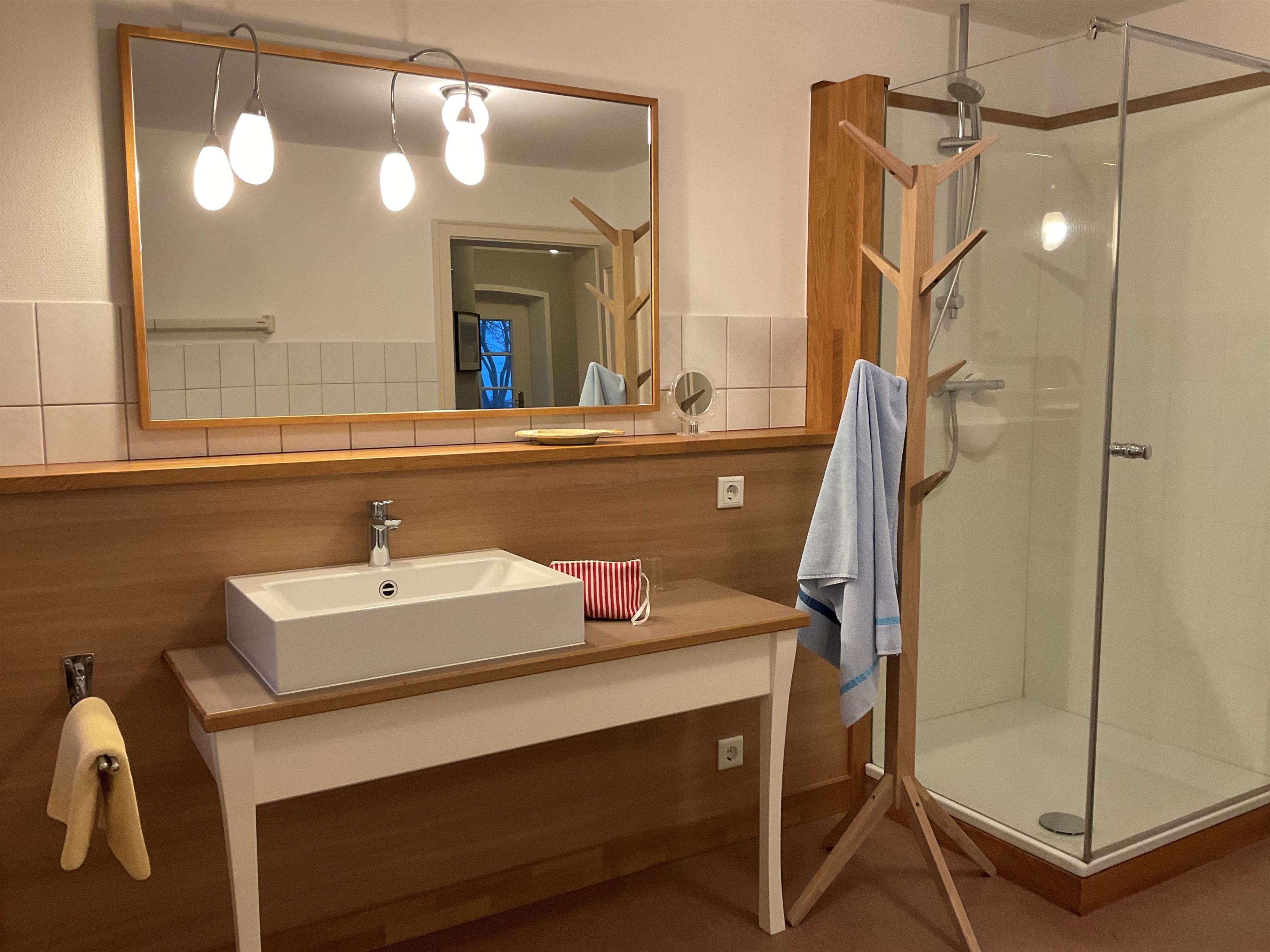 Schick und gemütlich eingerichtete Ferienwohnung für zwei Personen. Die Wohnung hat einen separaten Eingang und ist 2021 renoviert worden, verfügt über Glasfaser-Internet mit 200Mbits und ist daher auch für Homeoffice geeignet. Im Schlafraum befindet sich ein Doppelbett. Im Wohnraum finden Sie einen Flachbildfernseher und eine Stereoanlage. Die Küche liegt separat und verfügt unter anderem über Backofen und Mikrowelle. Das Badezimmer ist mit WC, Dusche und Badewanne ausgestattet. Im Garten, mit eigener Terrasse Richtung Westen, stehen Sitzmöbel und eine Liegewiese zur Verfügung. Handtücher und Bettwäsche sind im Preis enthalten. Es handelt sich um eine Nichtraucherwohnung. Ein Babybett steht auf Anfrage für Sie zur Verfügung. Ein PKW-Stellplatz und ein Abstellraum für Fahrräder sind vorhanden.