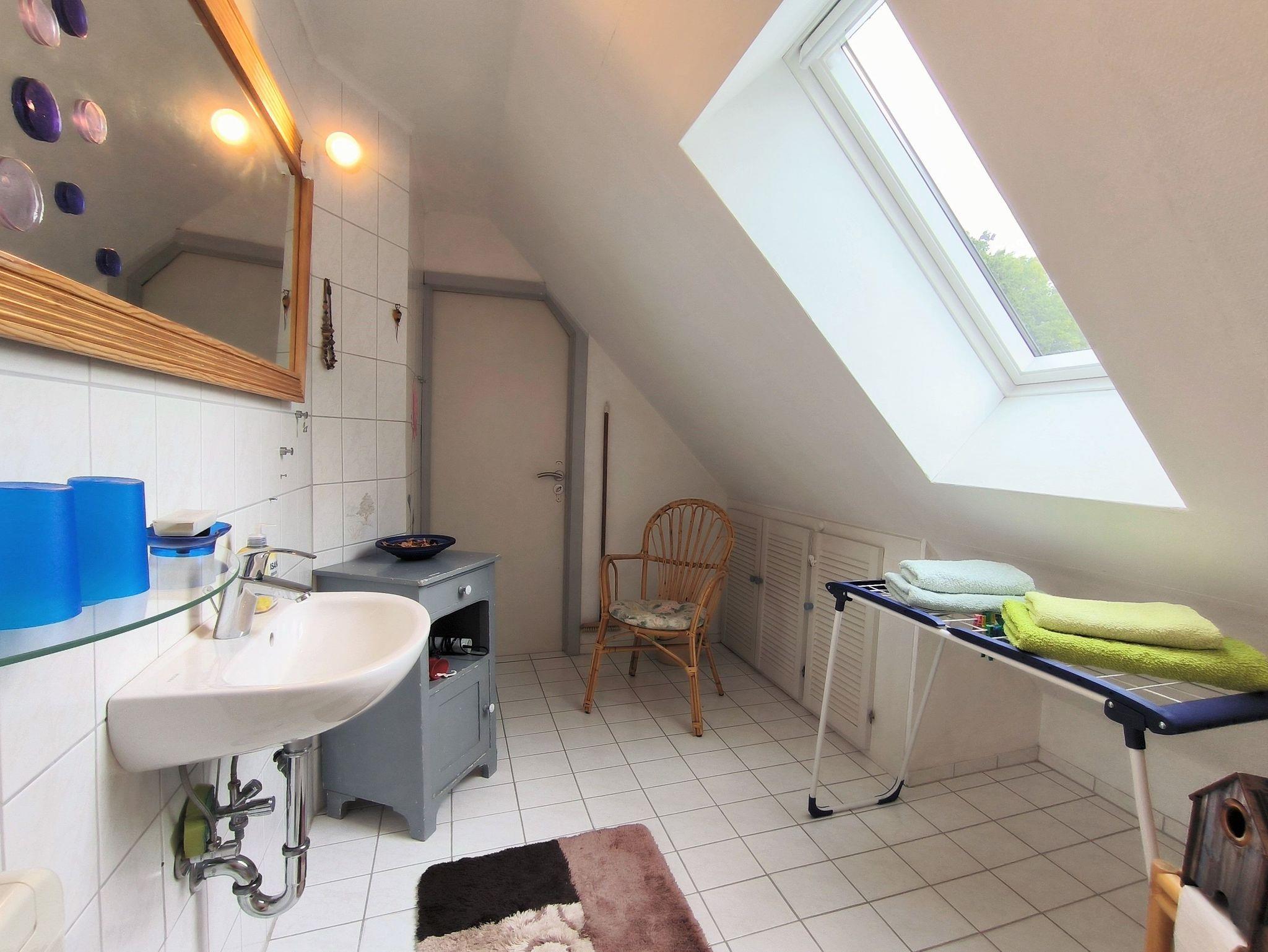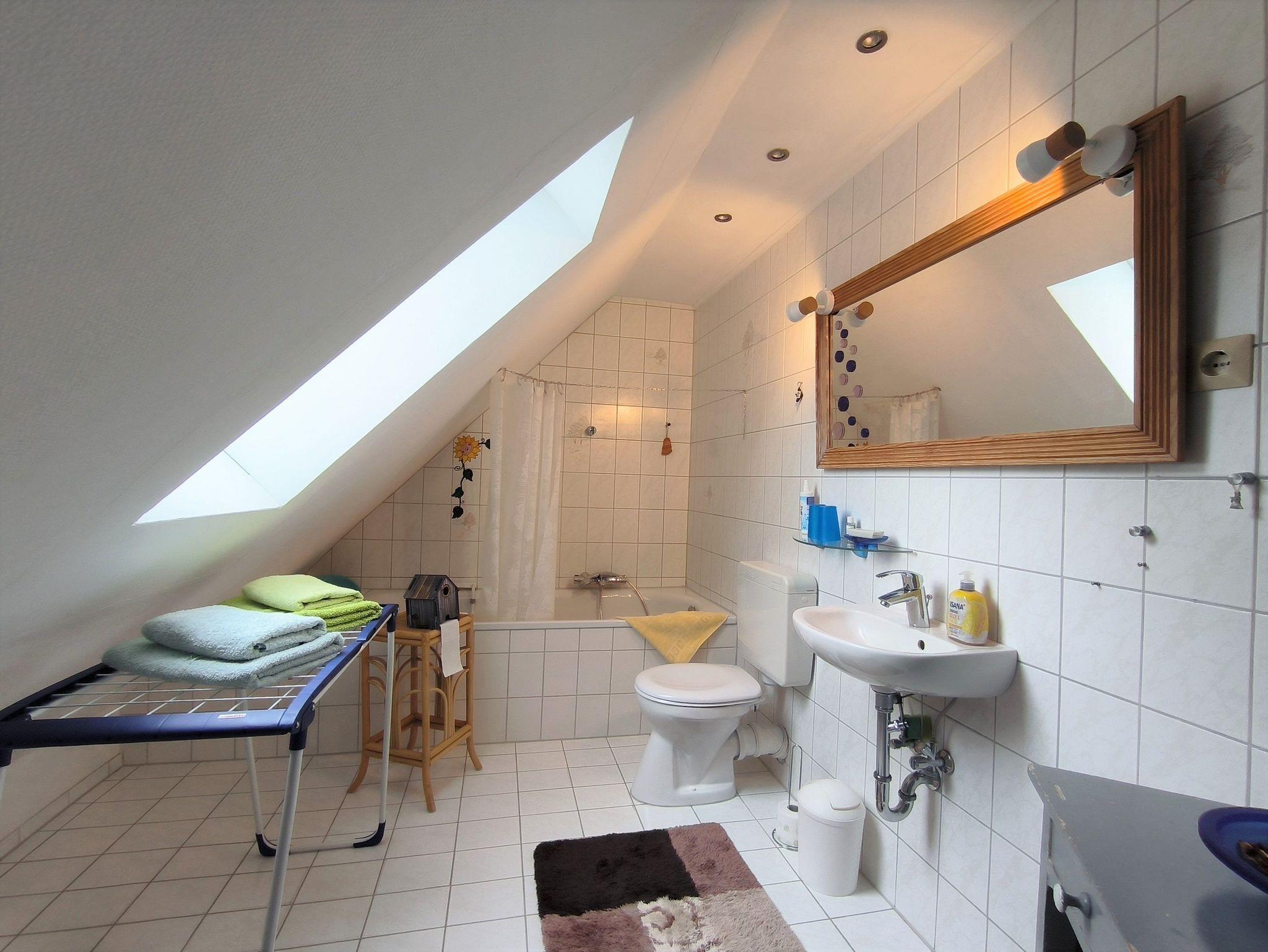 Man erreicht die Räumlichkeiten durch einen separaten Eingang über einen Gemeinschaftsflur, der z.T. an die Eigentümerwohnung grenzt, über eine schmale, steile Treppe. Im Eingangsbereich gibt es eine Sitzgelegenheit für die Gäste. Das Schlafzimmer für ein bis zwei Personen (1,40 x 2,00 m), eine kleiner Aufenthaltsraum mit Küchenzeile, Esstisch, Sofa und TV sowie ein Wannenbad befinden sich im Obergeschoss. Durch die offene Bauart ist die Unterkunft keine abgeschlossene Wohneinheit.