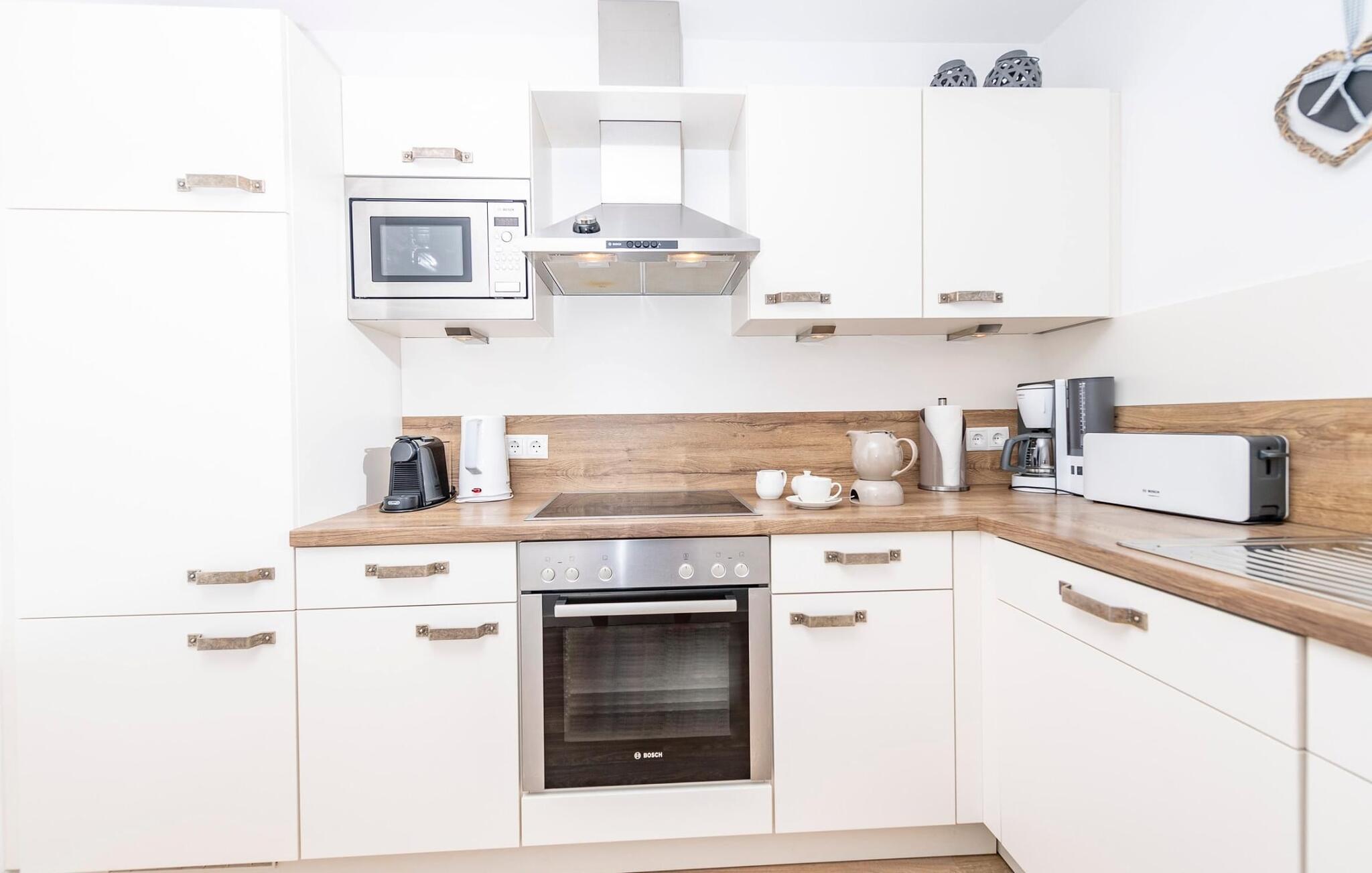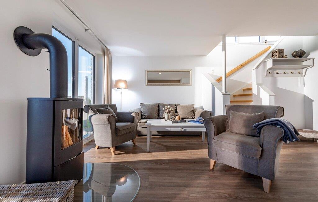 Der Weidefelder Sandstrand befindet sich in unmittelbarer Nähe und ist zu Fuß zu erreichen, während die Grünfläche um das Haus zum Spielen und Verweilen einlädt. Die Panorama-Terrasse bietet einen phänomenalen Ostseeblick und lädt zu gemeinsamen Grillabenden bei Hafenkino ein. Fußbodenheizung und Kaminofen spenden Komfort zu jeder Jahreszeit, während der private Wellnessbereich mit Whirlwanne und Sauna zum Tiefenentspannen einlädt. Familienfreundlich und offen gestaltet, bietet dieses Ferienhaus vollen Urlaubskomfort.