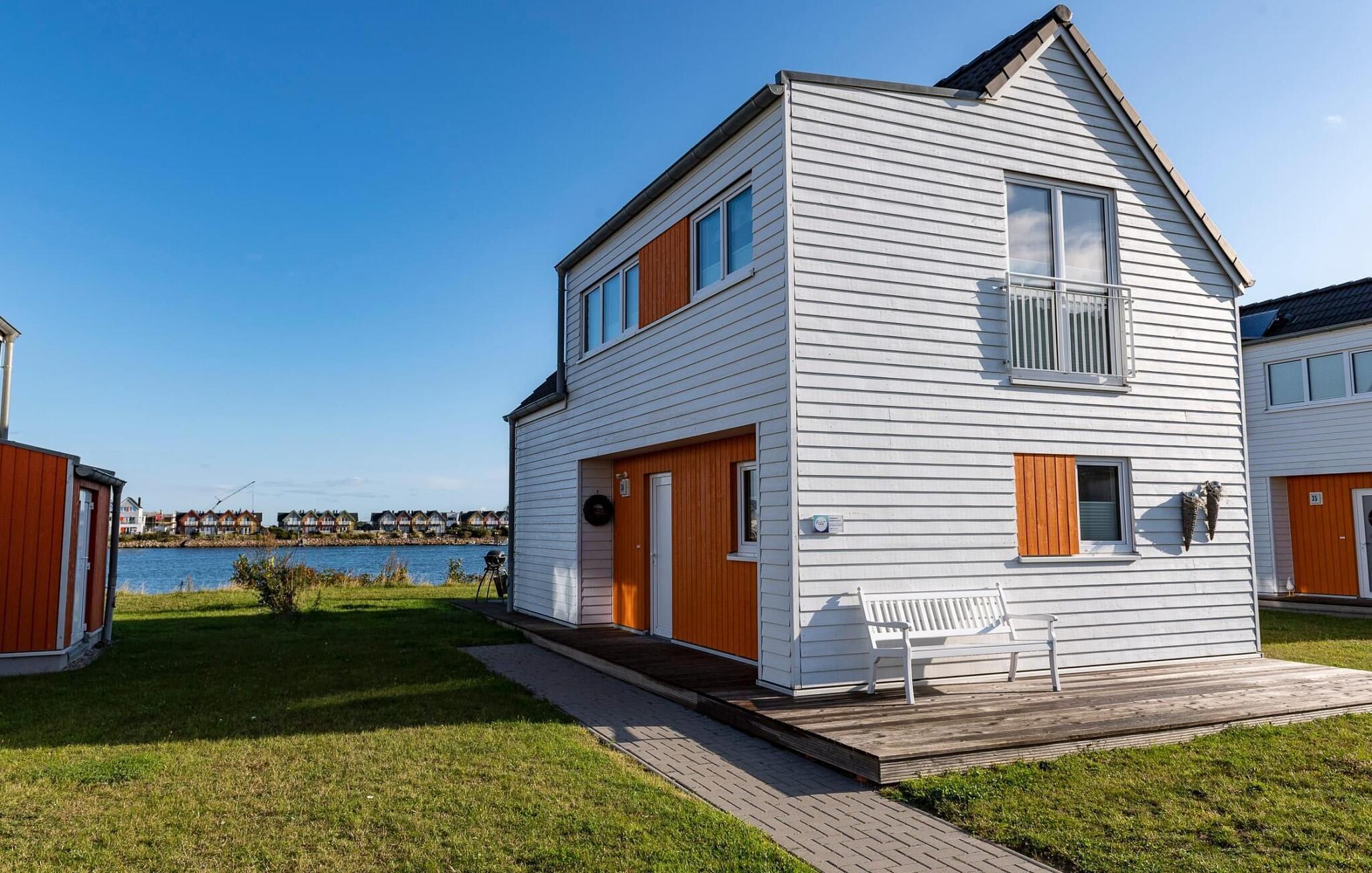 Ein freistehendes Ferienhaus in erster Reihe direkt am Wasser mit freiem Blick auf die Hafeneinfahrt und den Segel- und Sportboothafen des OstseeResort Olpenitz.