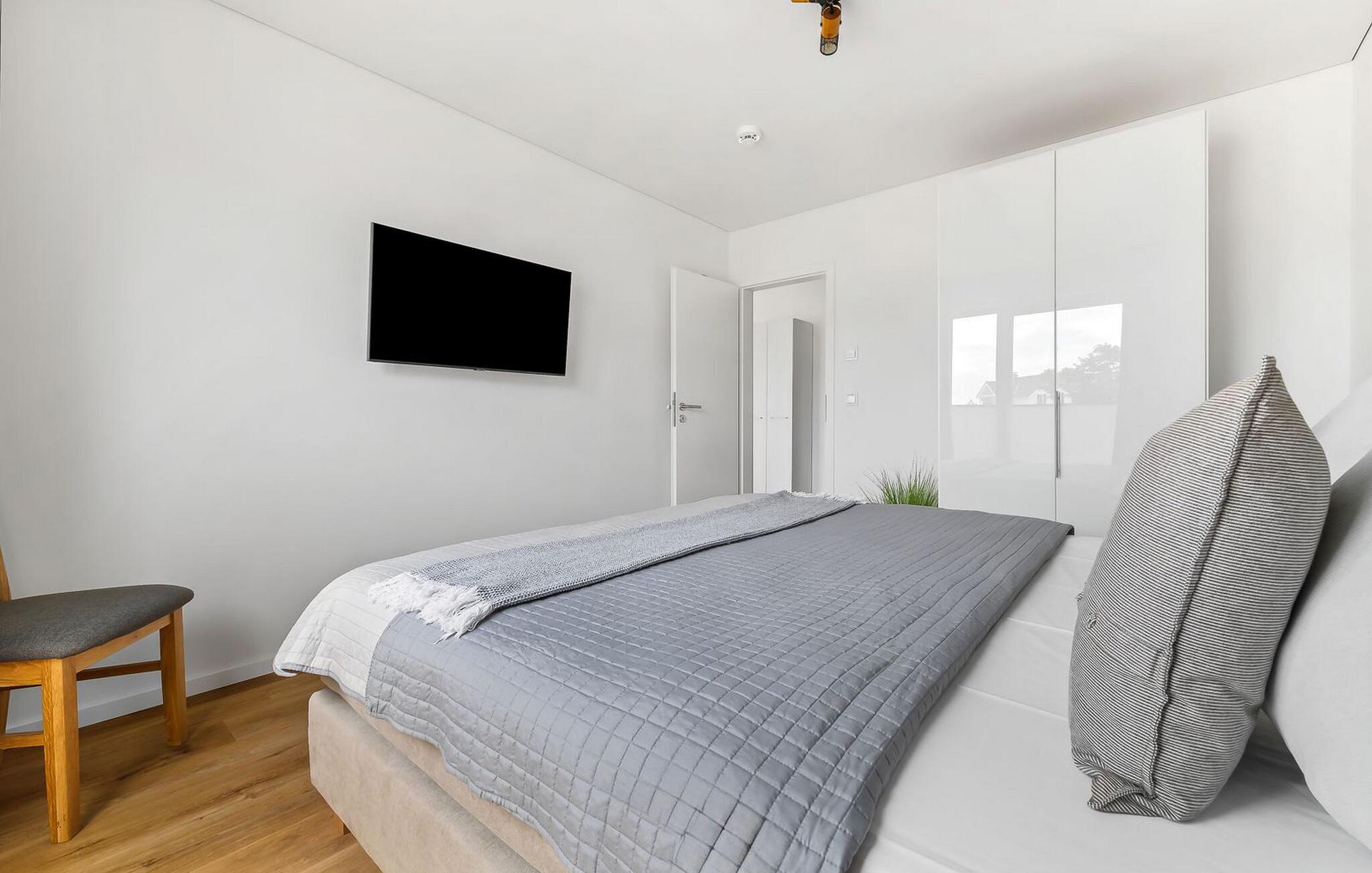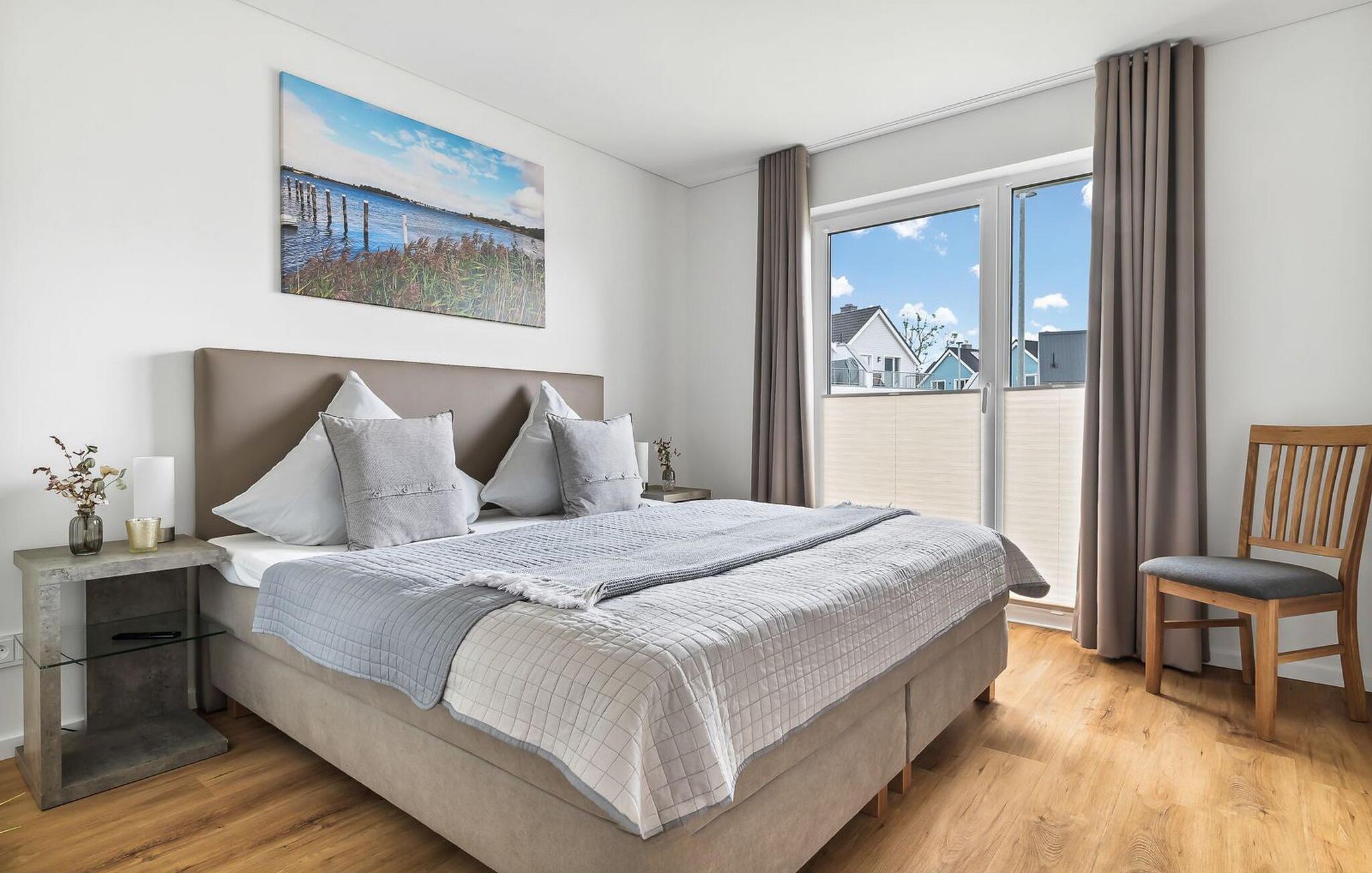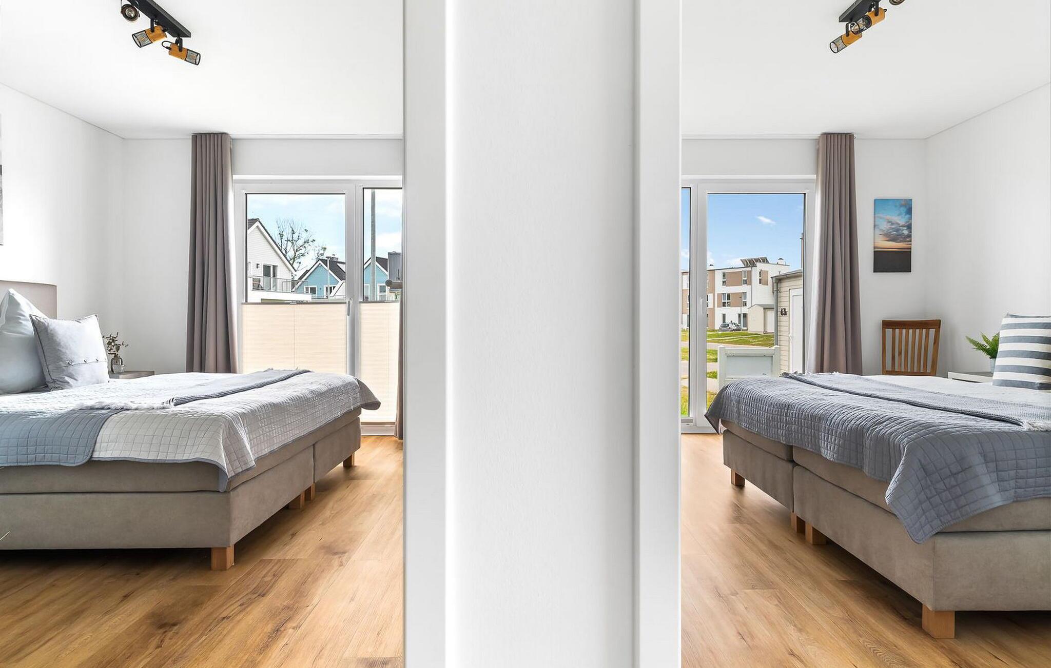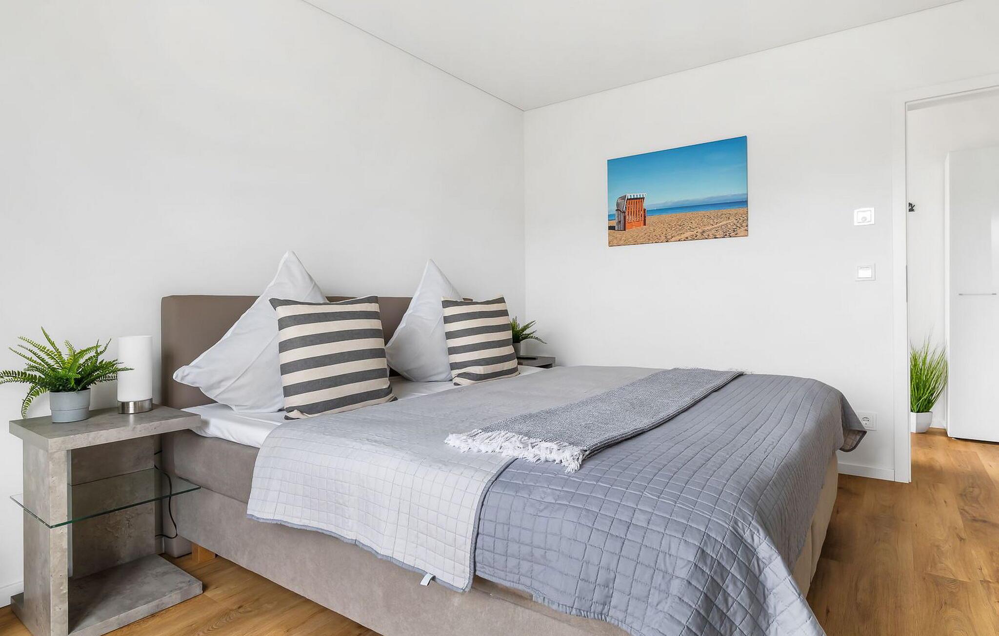 Für die nächtliche Erholung stehen zwei Schlafzimmer mit Verdunklungsvorhängen bereit. Ein Schlafzimmer ist mit einem Doppel-Boxspringbett ausgestattet, während das zweite Schlafzimmer über zwei Einzel-Boxspringbetten verfügt. Beide Schlafzimmer sind zudem mit einem Flatscreen-TV ausgestattet.