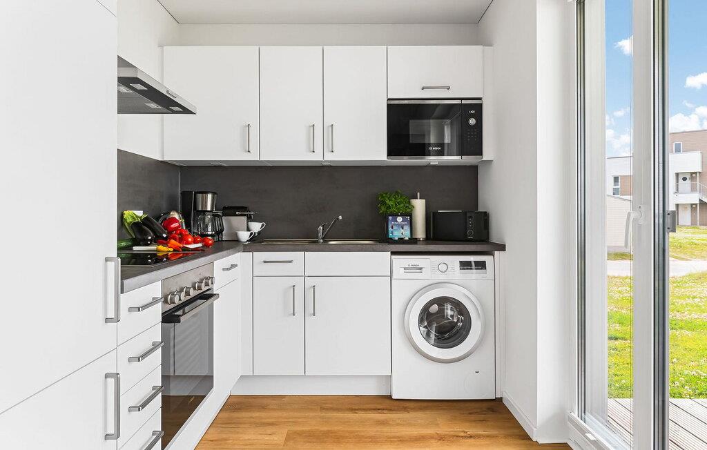 In der modernen und perfekt ausgestatteten Küche geht Hobbyköchen das Herz auf. Das Essen kann anschließend am Esstisch oder auf der großen überdachten Terrasse genossen werden. Diese grenzt direkt an den Wohnbereich an und lädt zu sonnigen Grillabenden in einer angenehmen SOMMERBRISE ein. Vor der Wohnungstür fordert eine schöne Holzbank zum Verweilen auf.