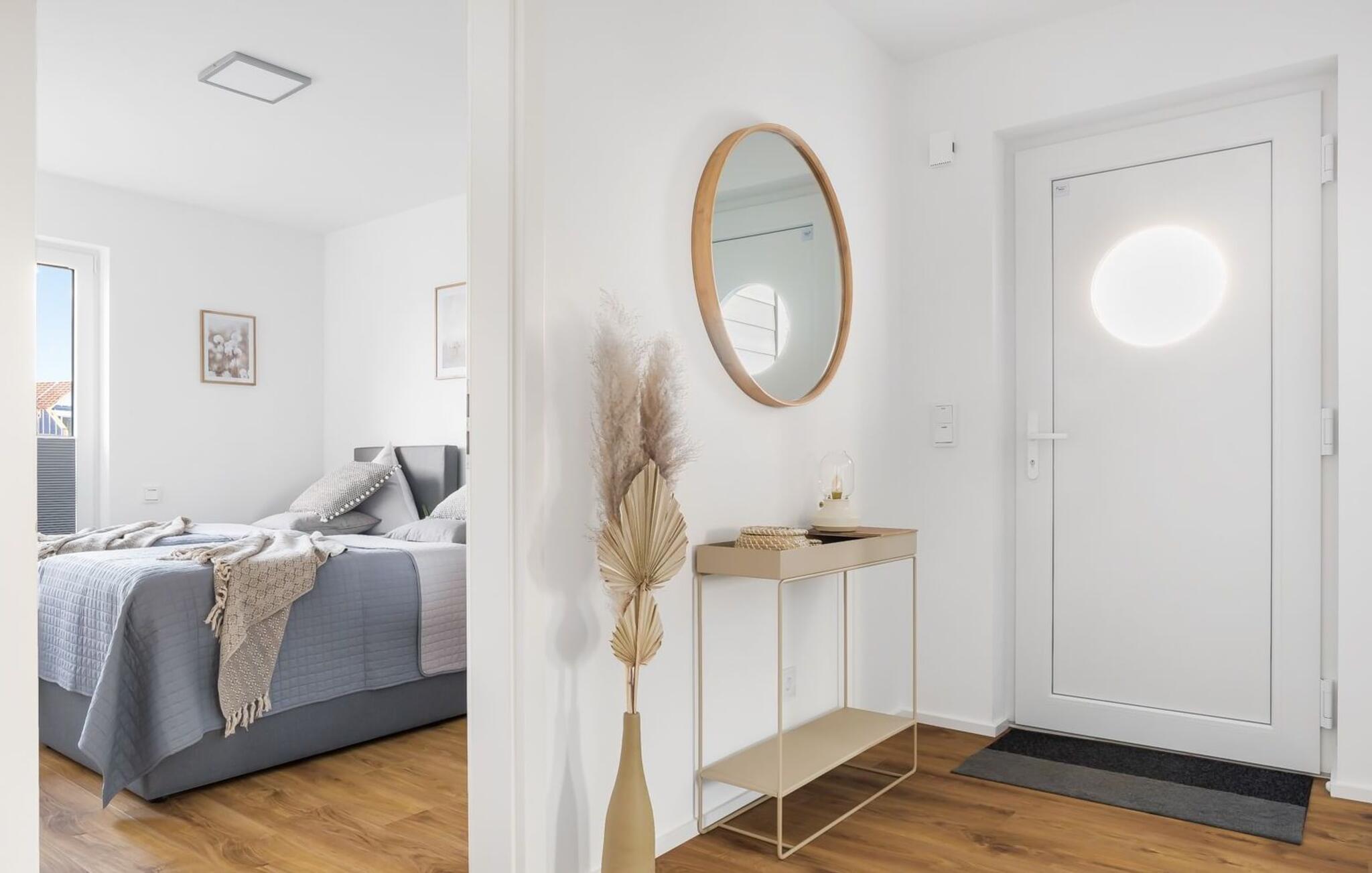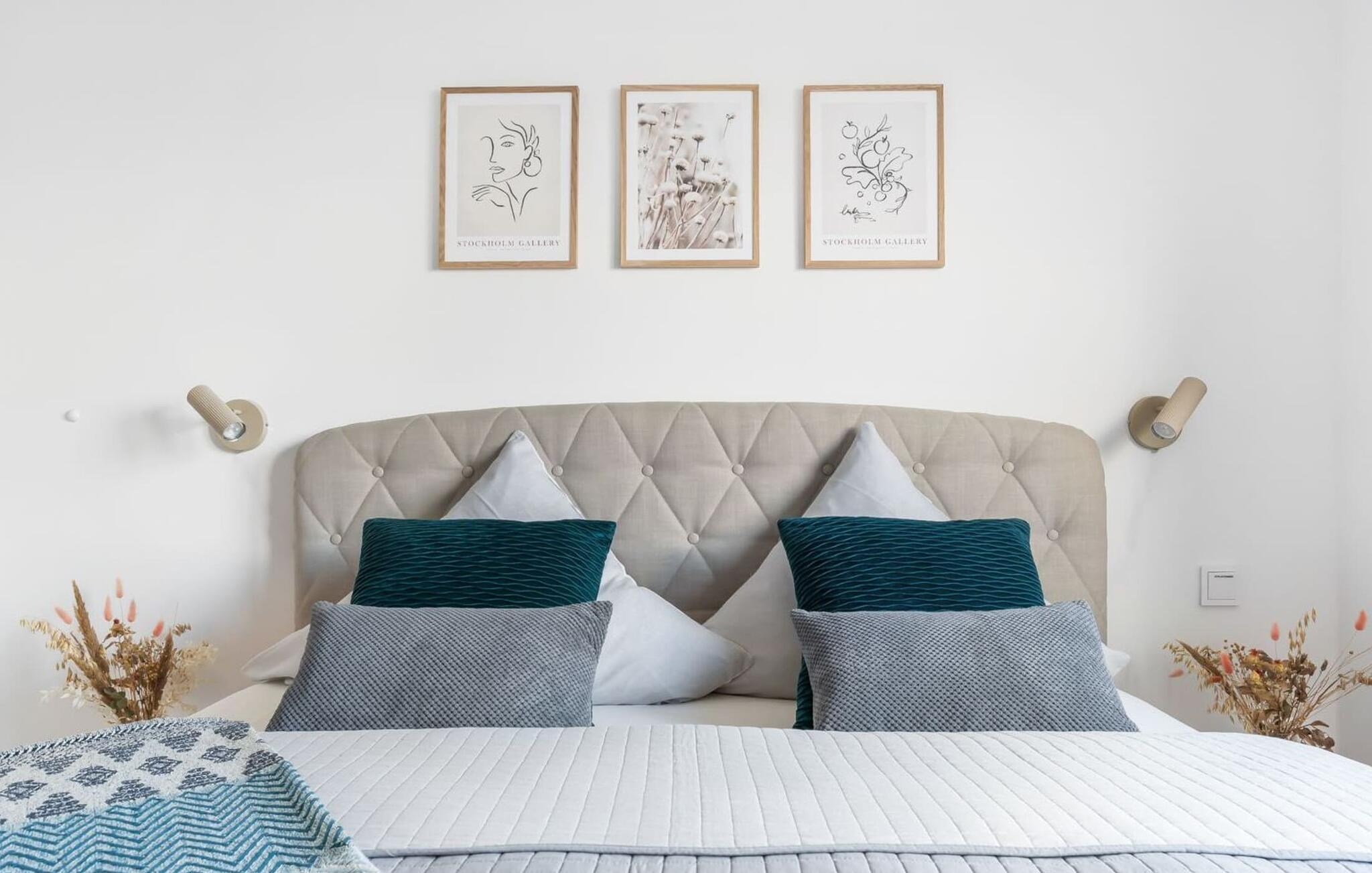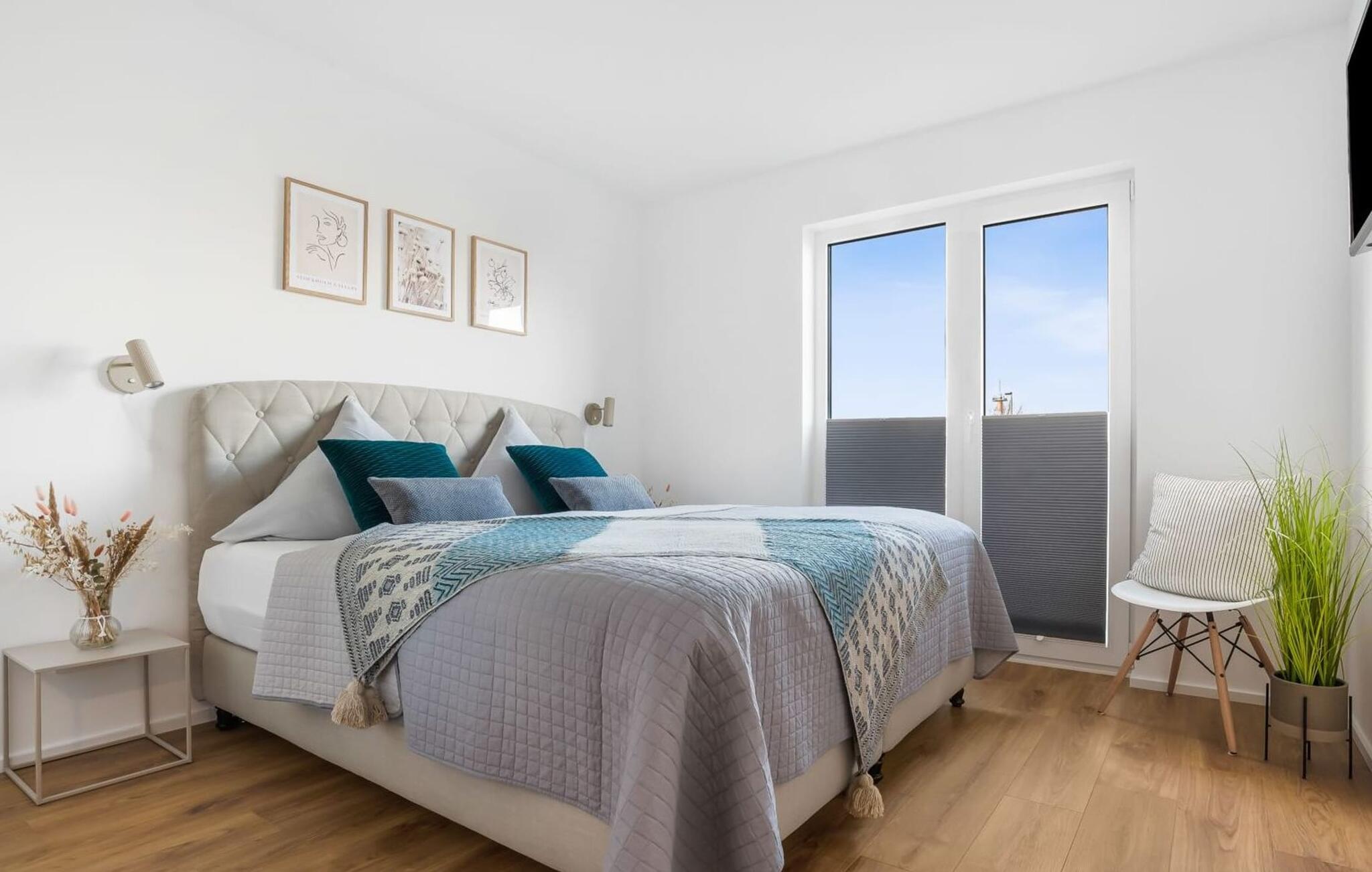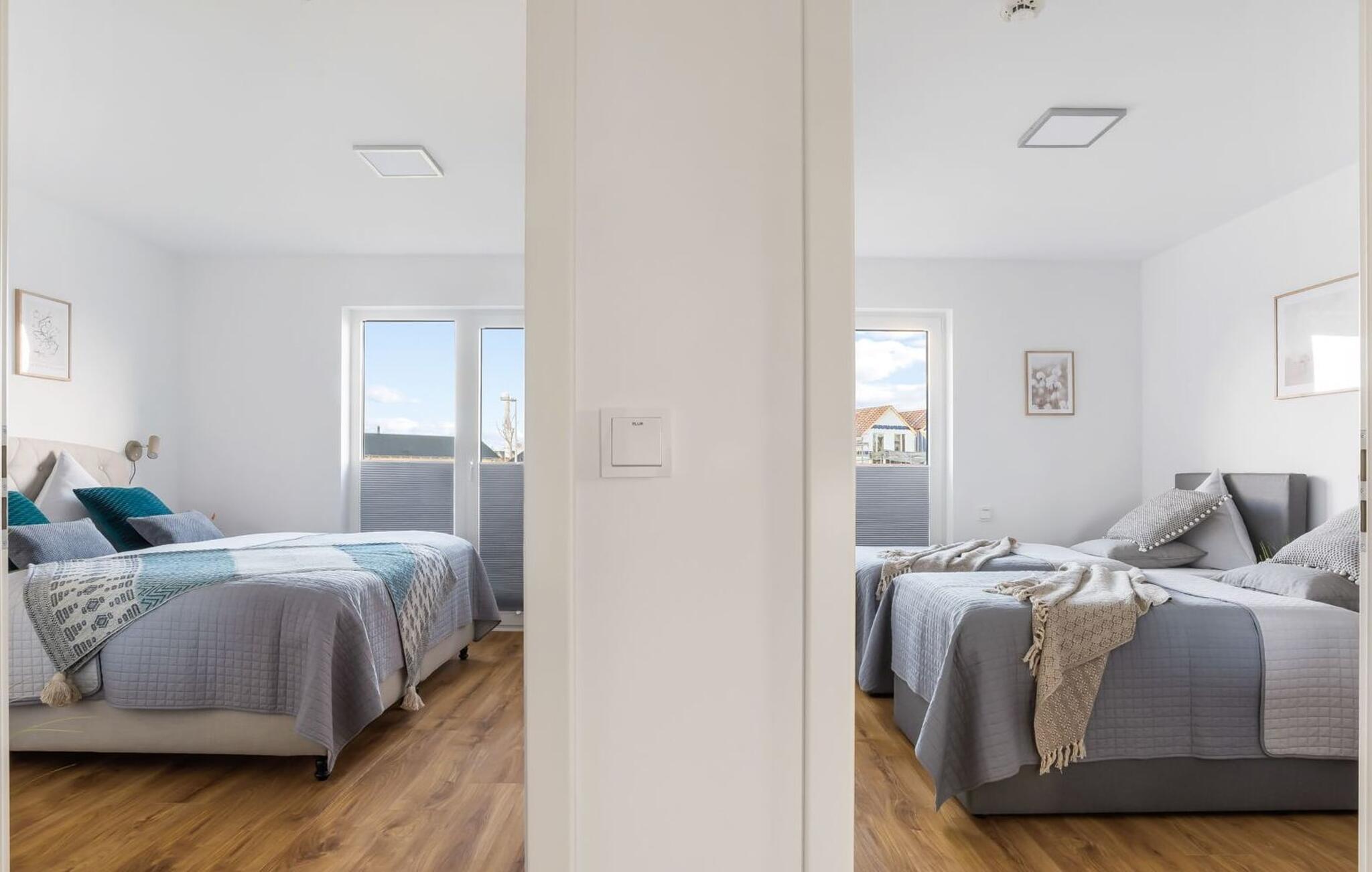 Für die nächtliche Erholung stehen zwei Schlafzimmer zur Verfügung. Beide Zimmer sind mit komfortablen Boxspringbetten ausgestattet.
