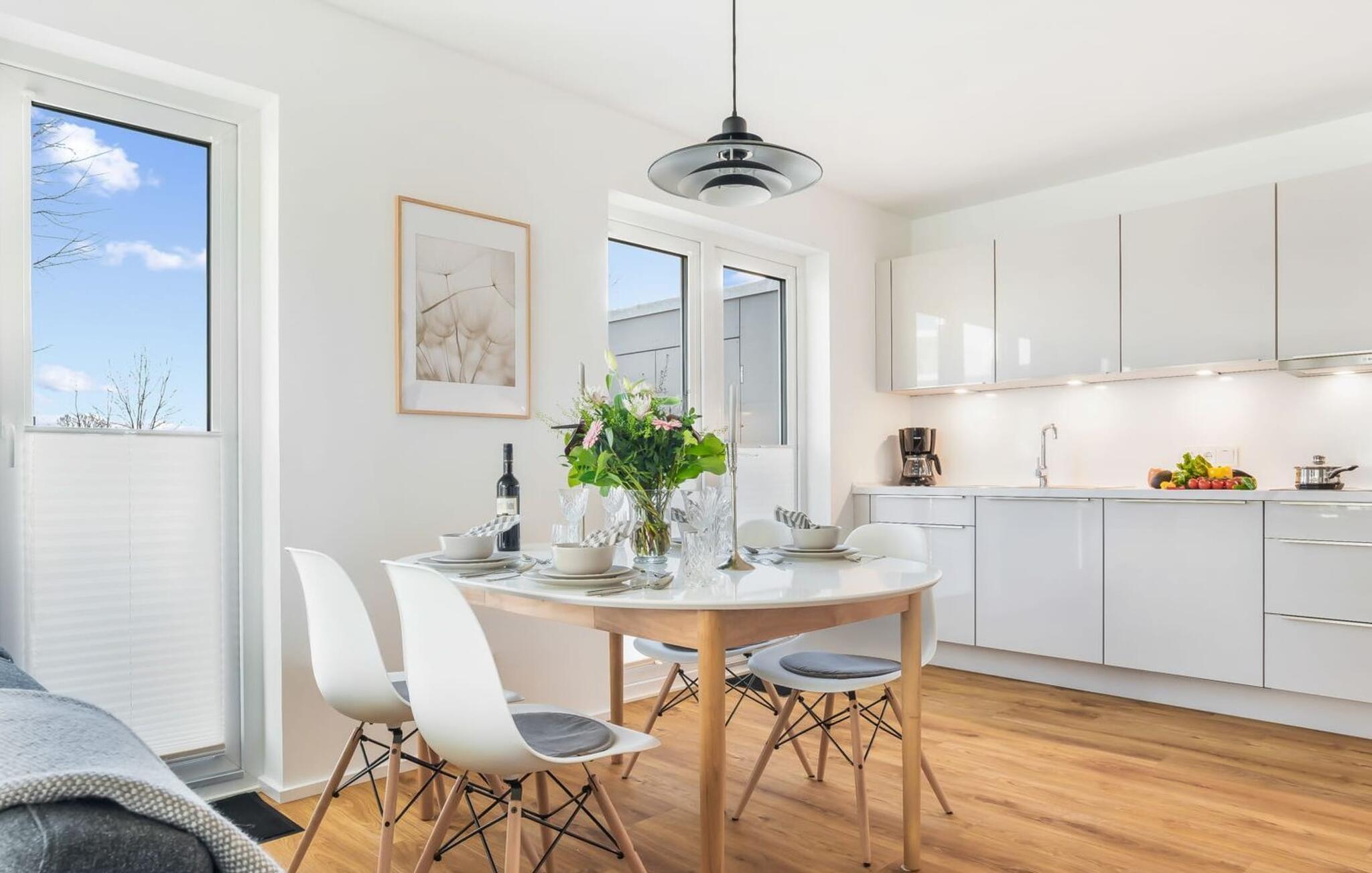 Die hochwertige Ausstattung der integrierten Küche mit Backofen in Stehhöhe sorgt für ein tolles Kocherlebnis.