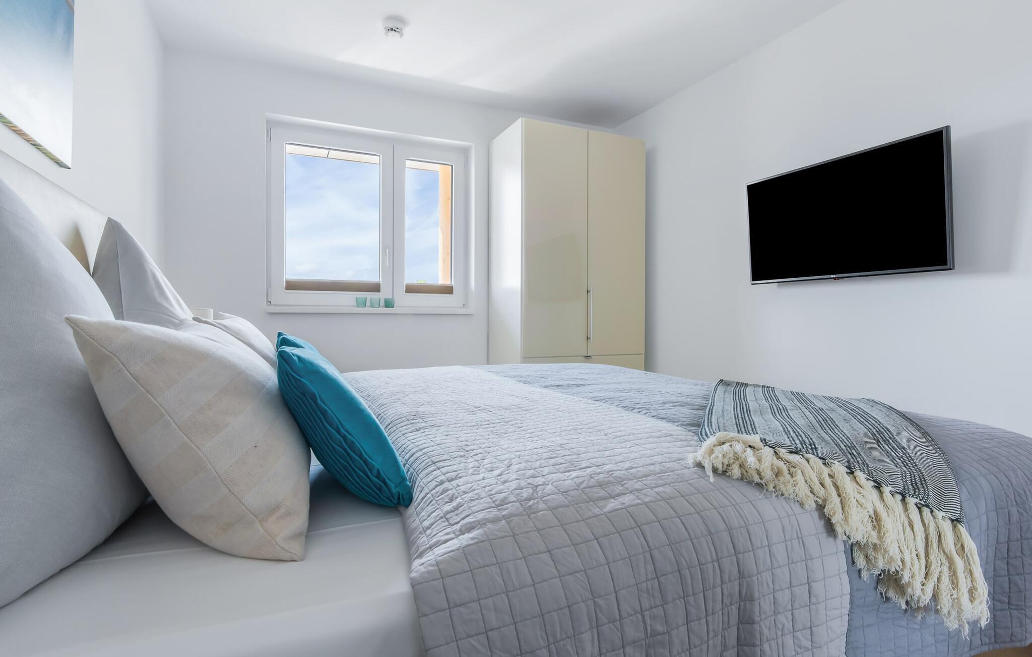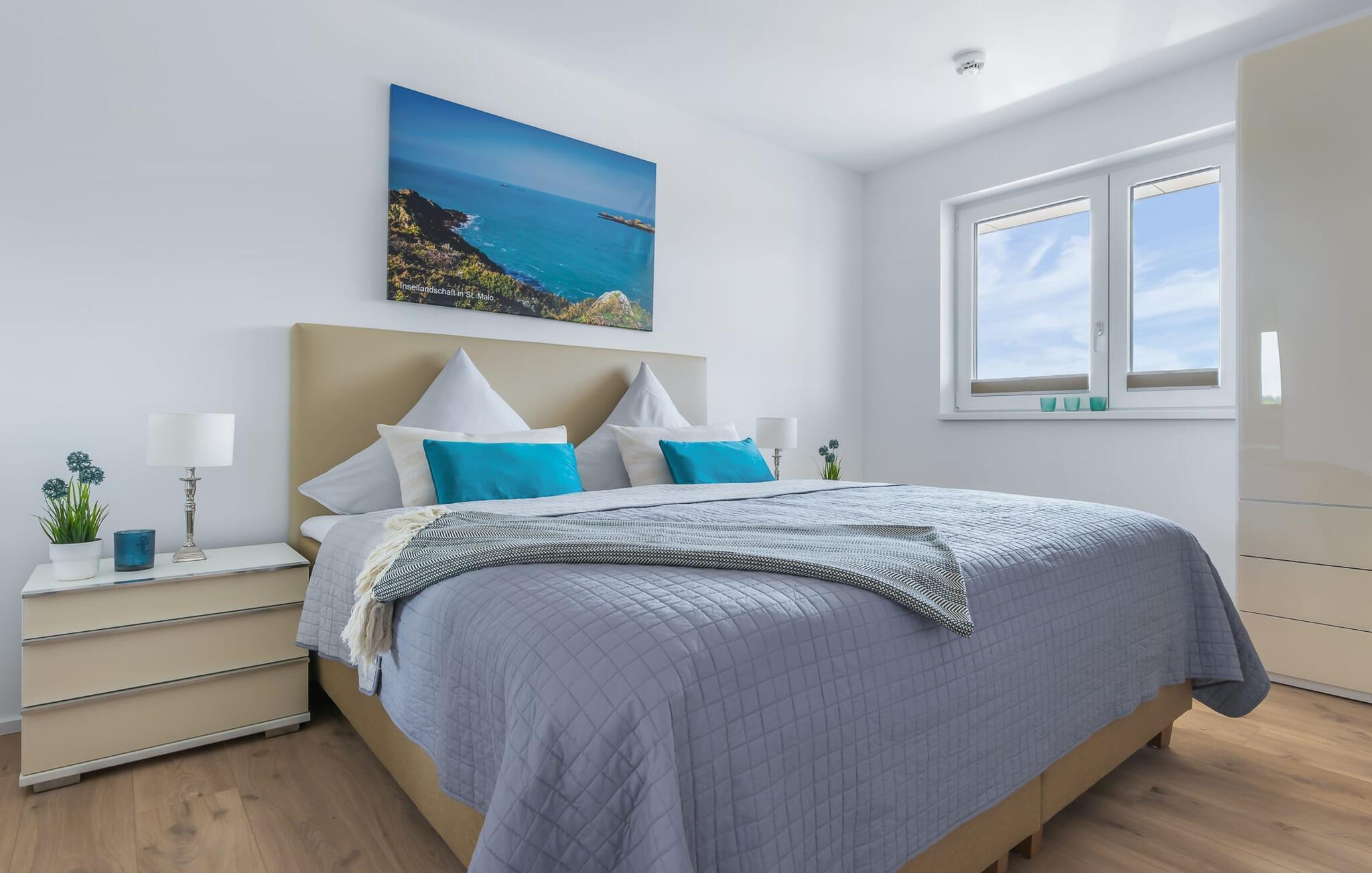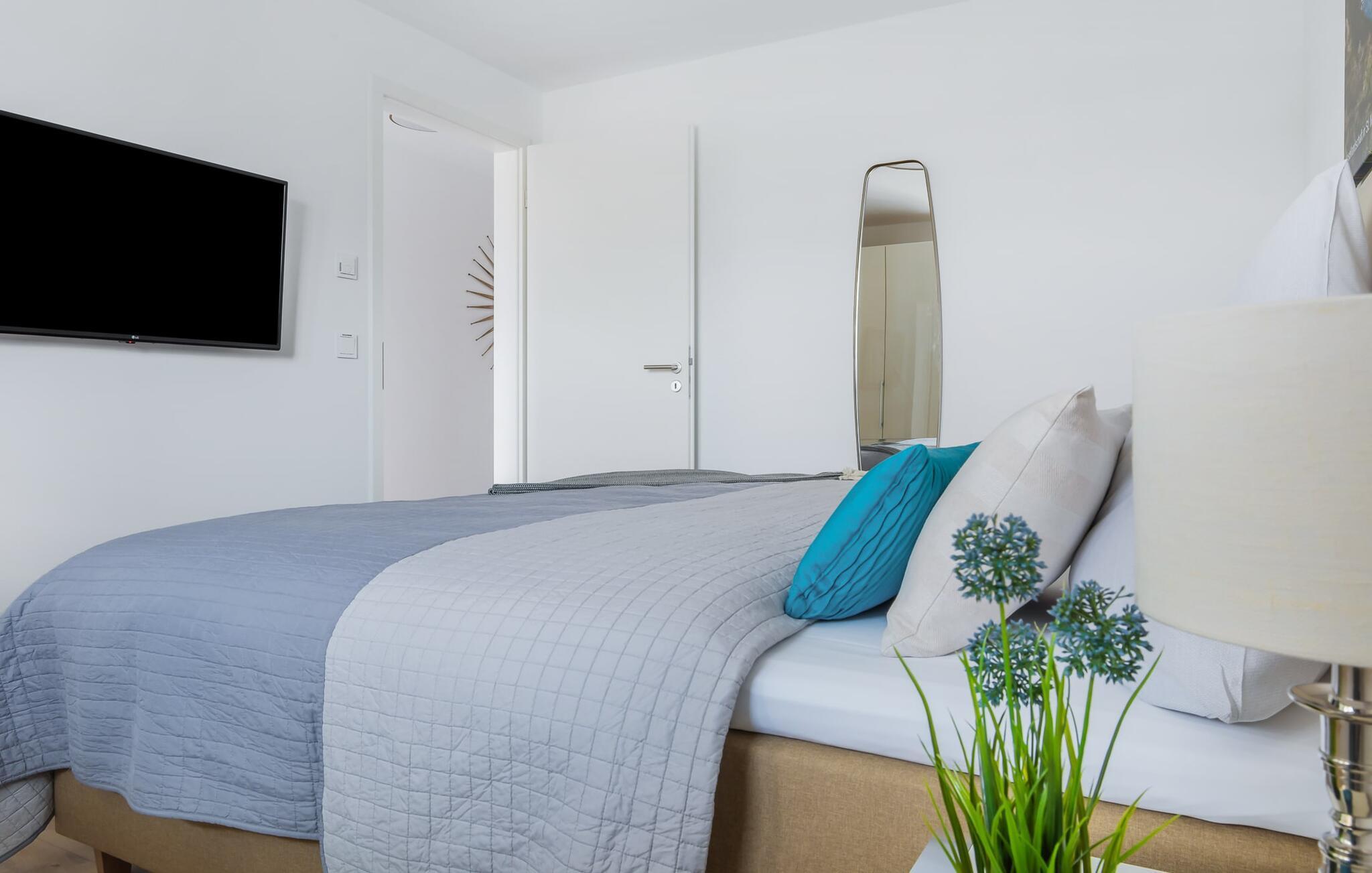 Das Schlafzimmer bietet mit seinem komfortablen Doppelbett und einem weiteren Fernseher die besten Voraussetzungen für entspannte Nächte.