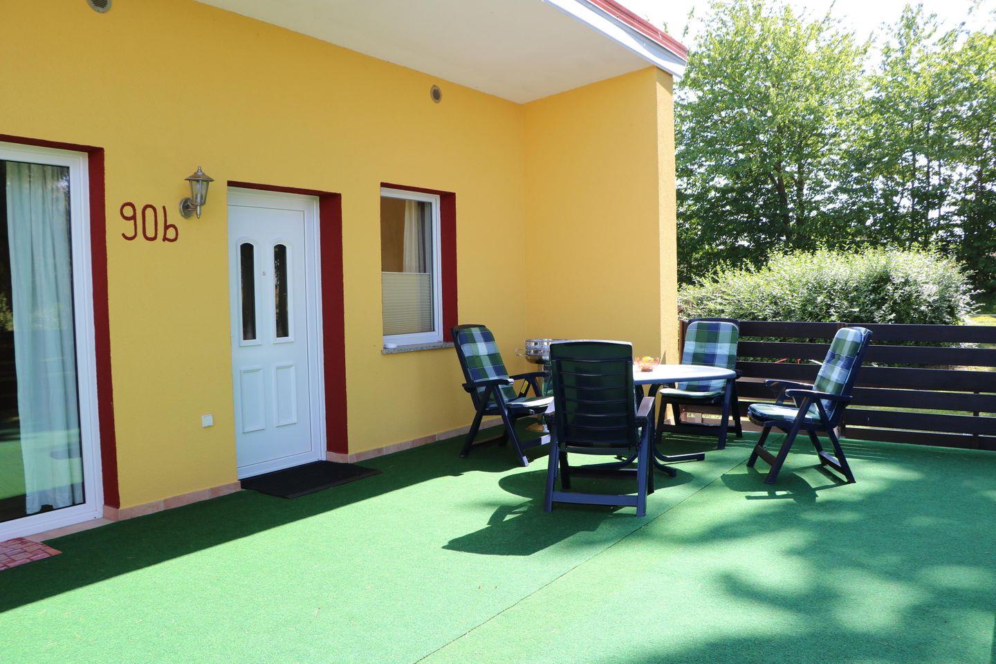 Gemütliche Ferienhaushälfte Ostseewellen II nahe der Ostsee mit Terrasse und Blick auf den Strelasund.